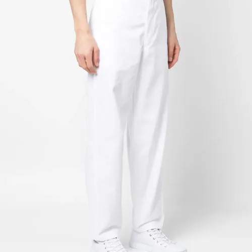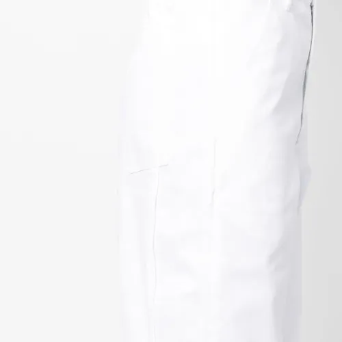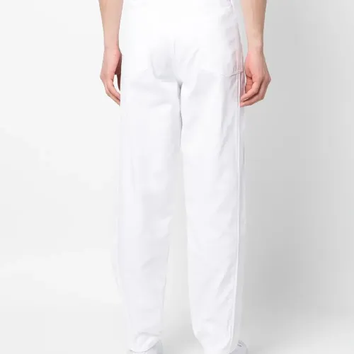 Прямой крой, деним, застежка на молнии и пуговице спереди, два кармана по бокам и два накладных кармана сзади.