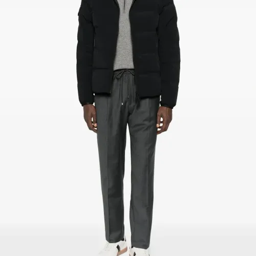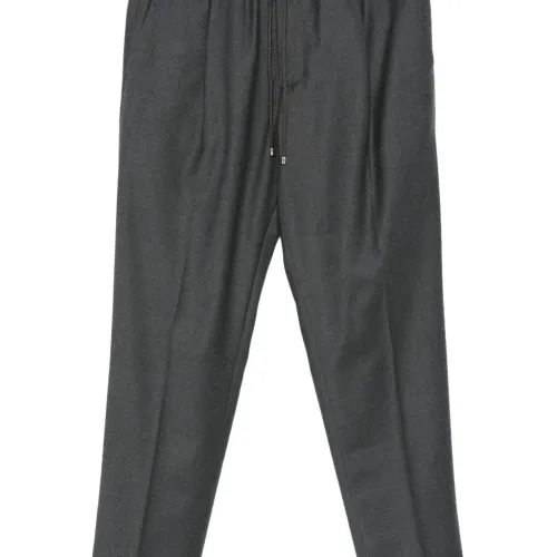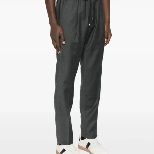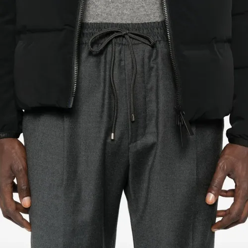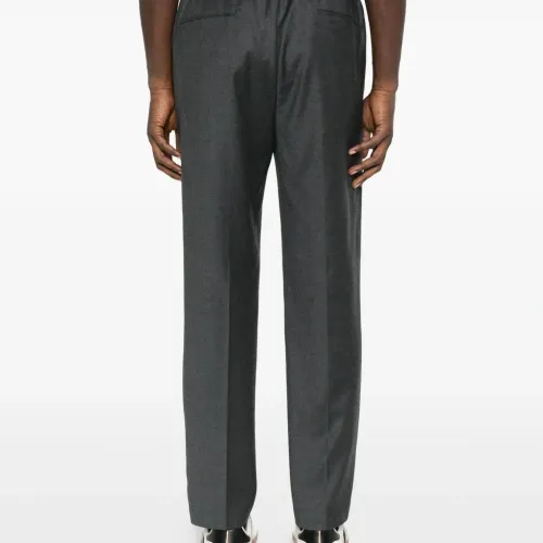 угольно-серые прямые брюки со складками на передней части, средней посадкой, на завязках, зауженного кроя