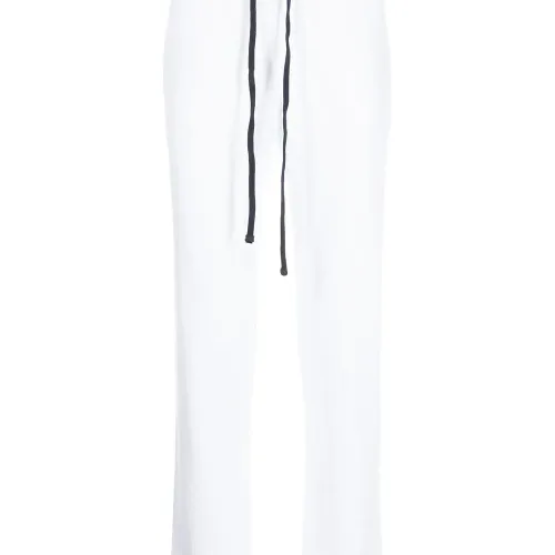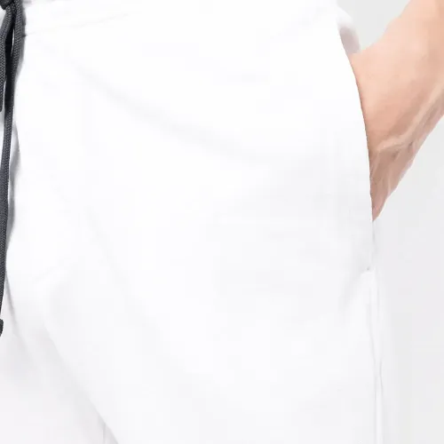 Белый, хлопок, материал c флисовой текстурой, кулиска на талии, два вшитых кармана по бокам и прямой крой.