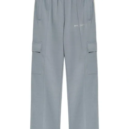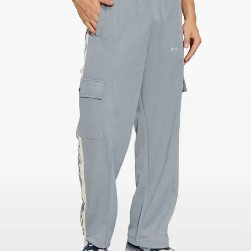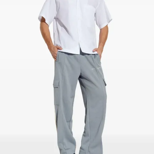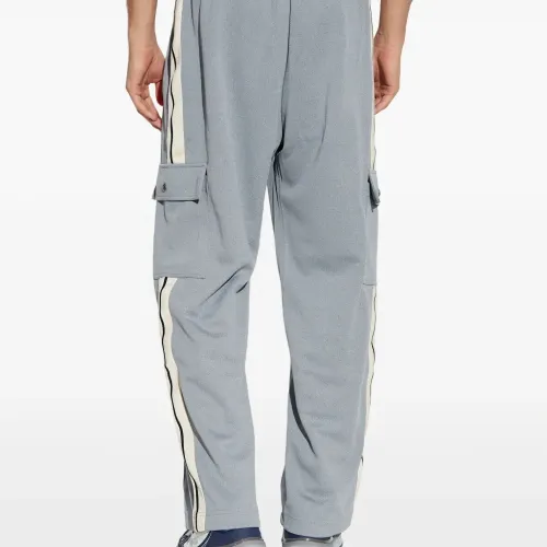 серые спортивные брюки с боковой полосой, накладными карманами, эластичным поясом и логотипом