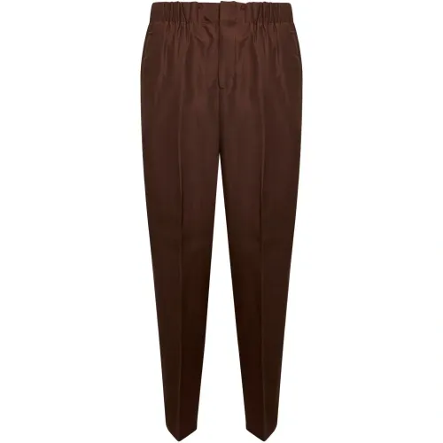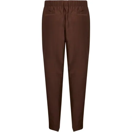 коричневые зауженные брюки на резинке