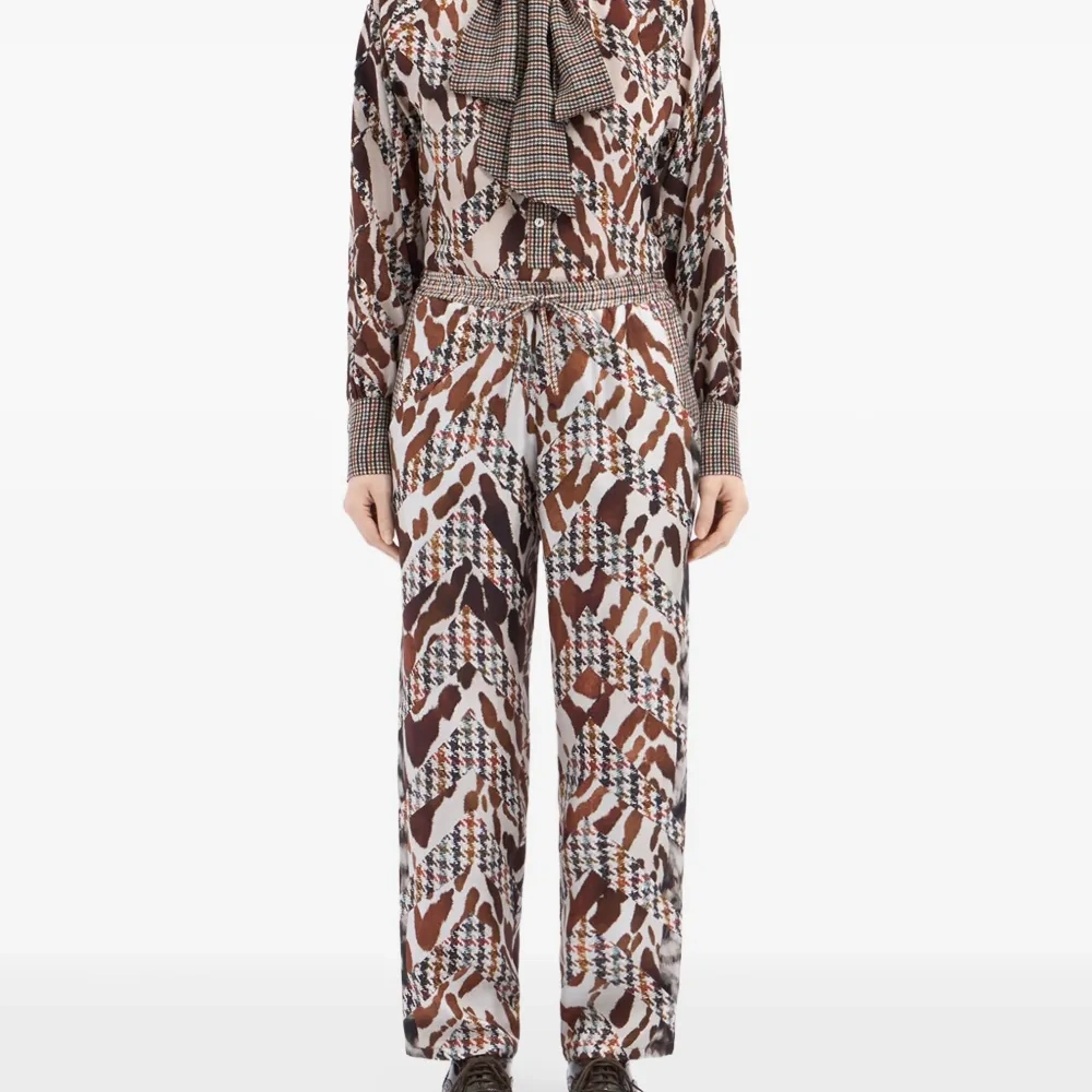 Брюки с поясом на завязках и узором "гусиная лапка"