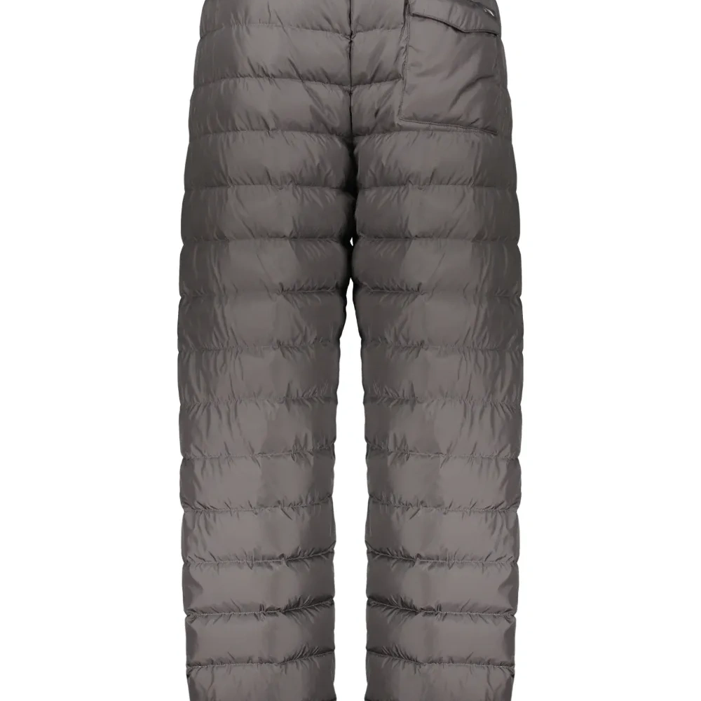 темно-серый цвет, стеганый дизайн, застежка на пуговицы, прямые брючины, задний карман, боковые карманы
