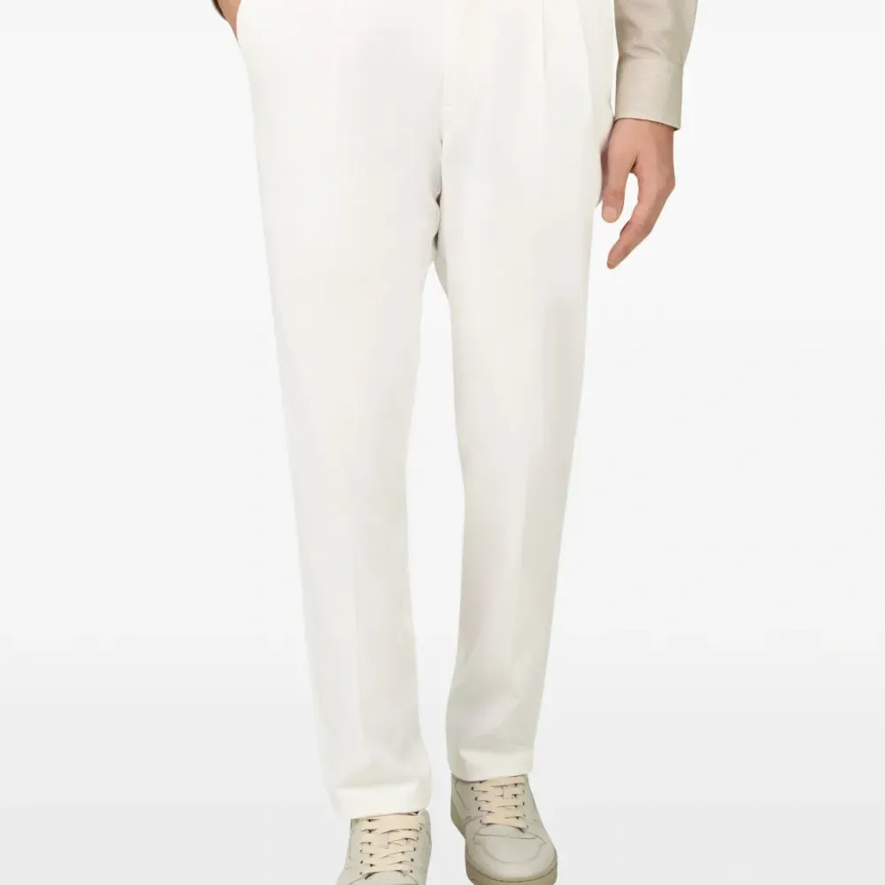 белые, застежка на молнию и пуговицу спереди, диагональные карманы, задние карманы, вытачки