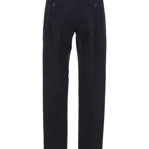 темно-синие шлевки, застежка на пуговицу, прорезные карманы сзади