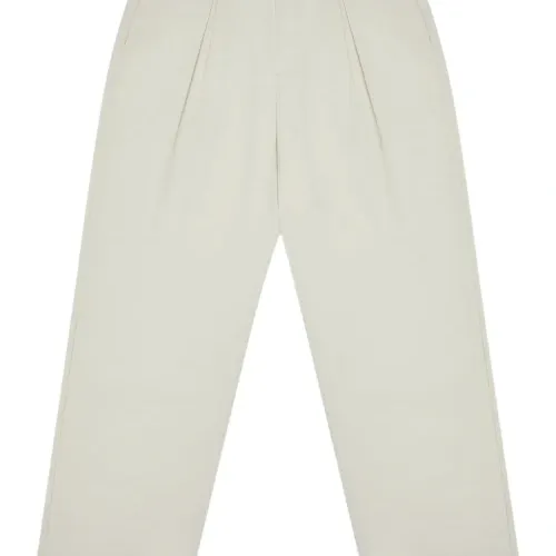 Айвори, плиссированные, застёжка на пуговицы, шлёвки для ремня, задний прорезной карман, прямые брючины
