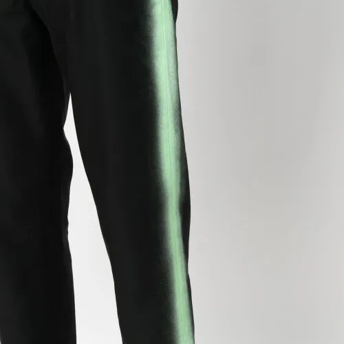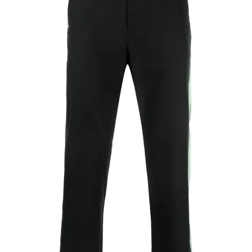 Черный, смесовый хлопок, средняя посадка, прямой крой, укороченная длина, полоска сбоку, потайная молния спереди, эластичный пояс, два прорезных кармана по бокам, два кармана с листочкой сзади и прямой подол.