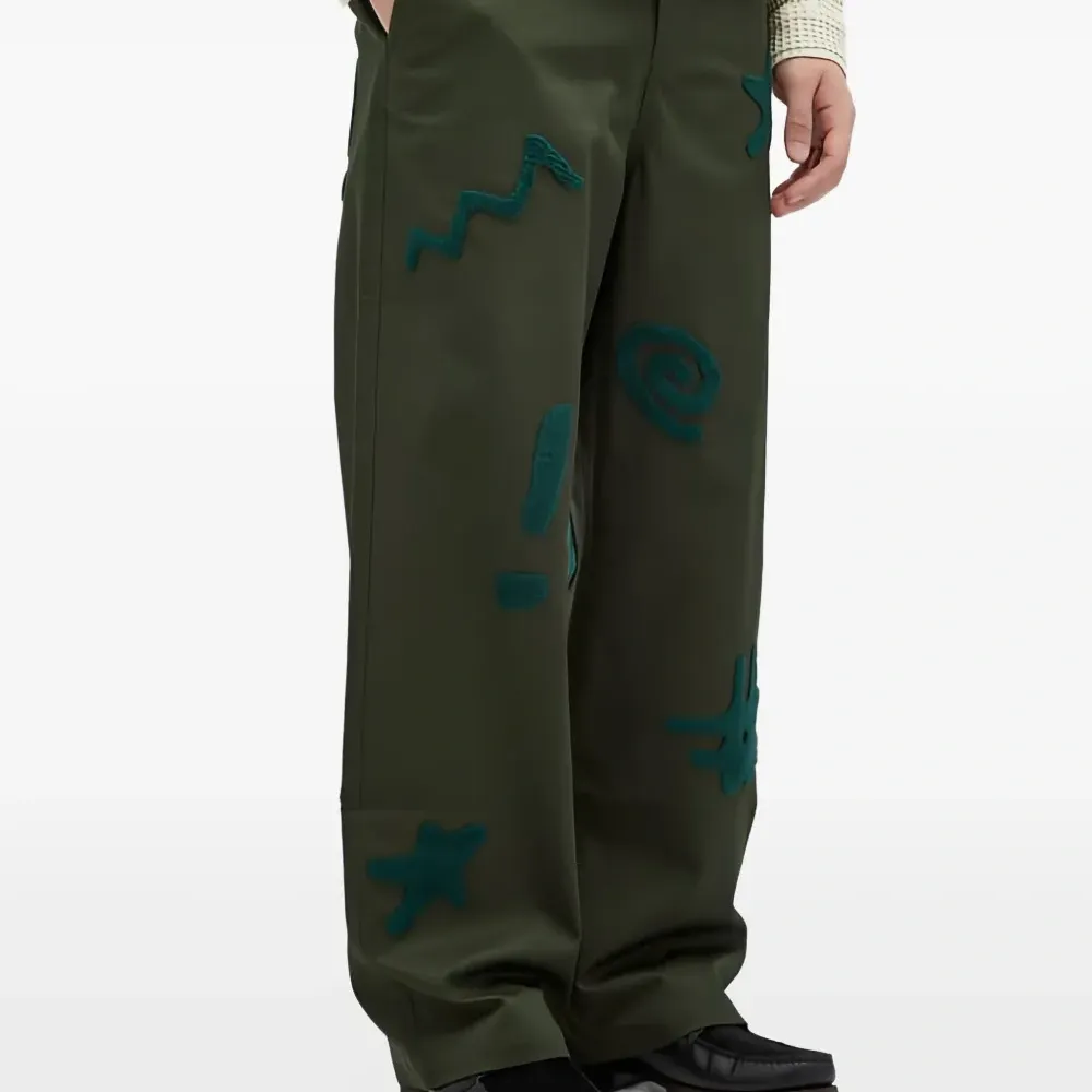 зеленый хлопок четыре кармана вышивка из шенилла абстрактные формы