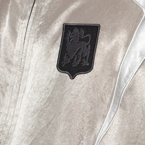 серебристый патч с логотипом, капюшон, застежка-молния, эластичный низ, длинные рукава