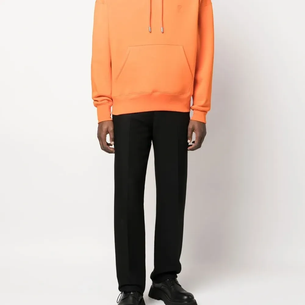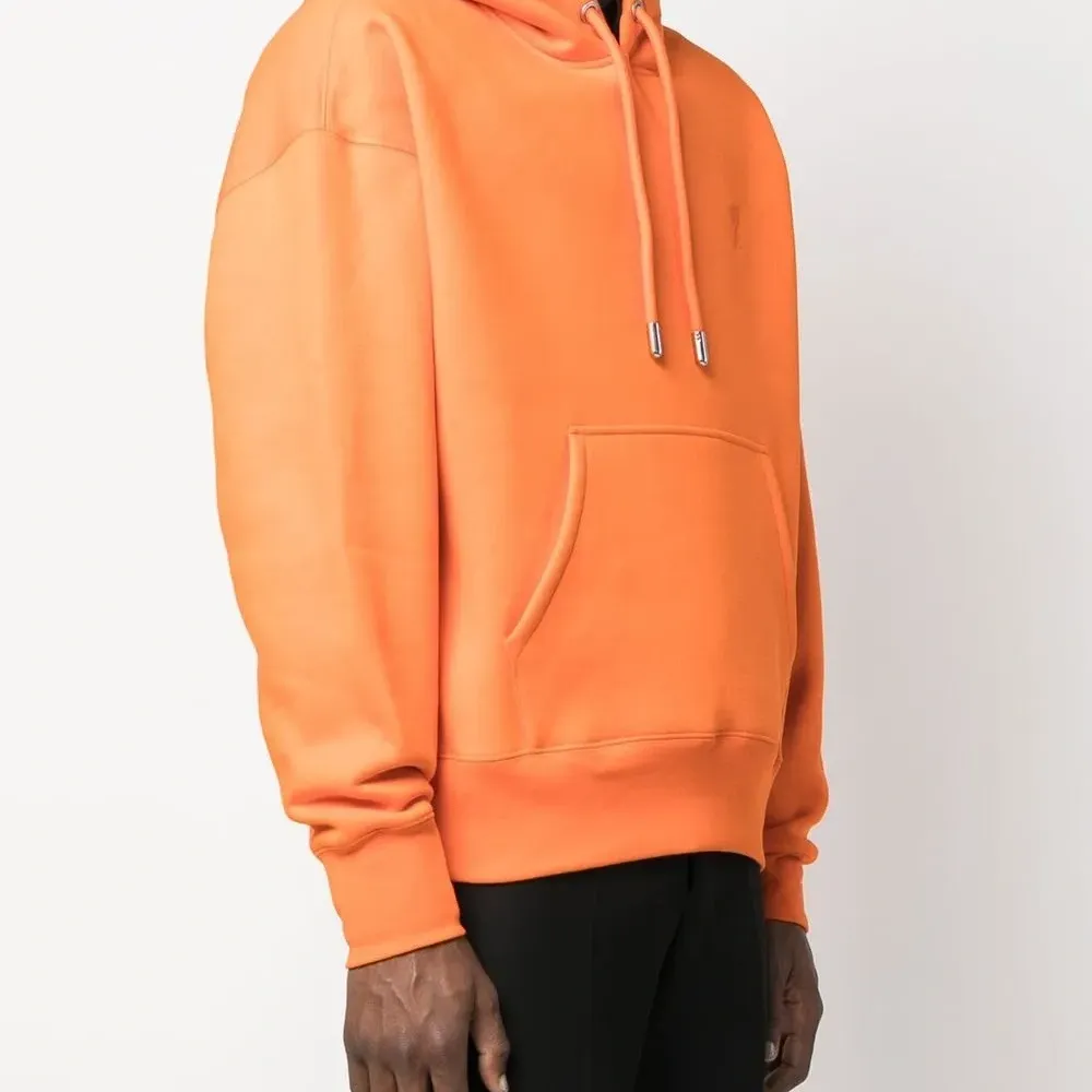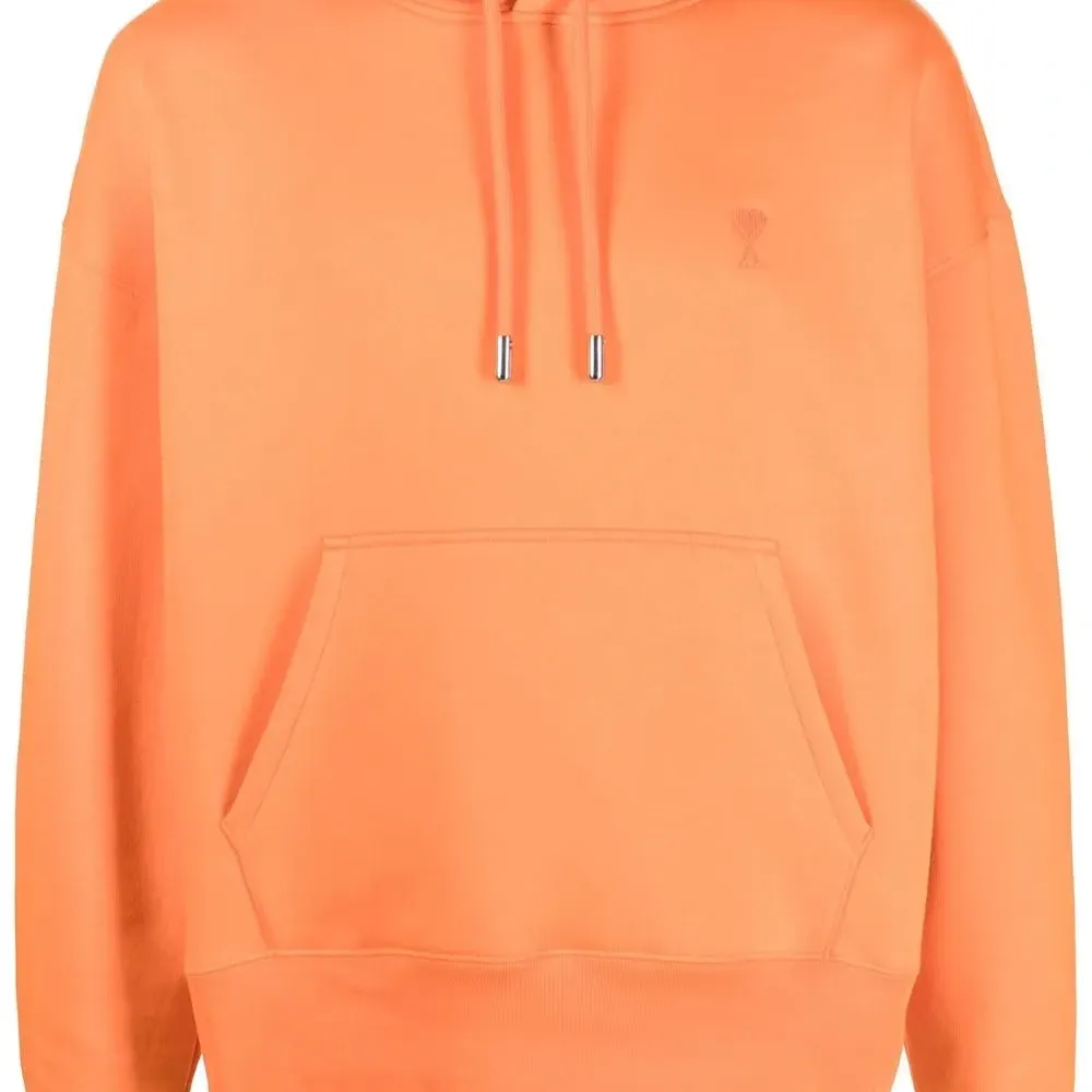 Оранжевый, хлопок, вышитый узор, затягивающийся на шнурок капюшон, длинные рукава и карман-муфта.