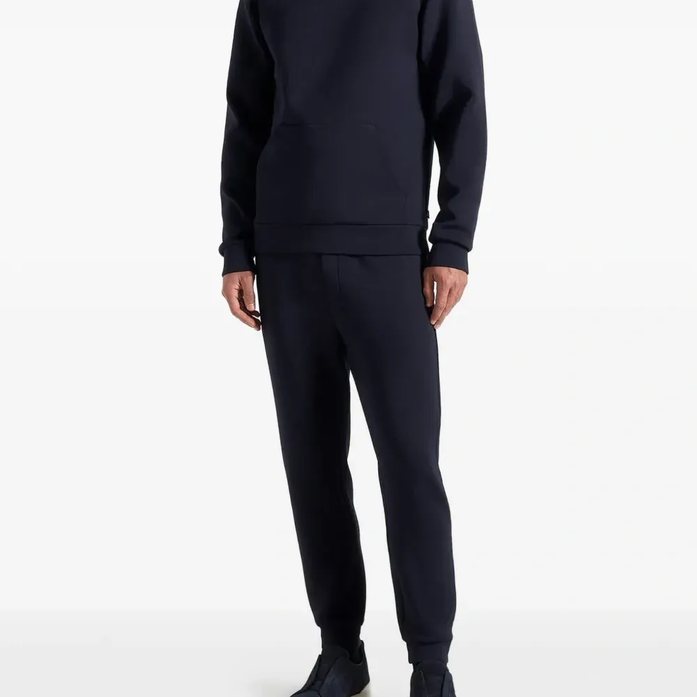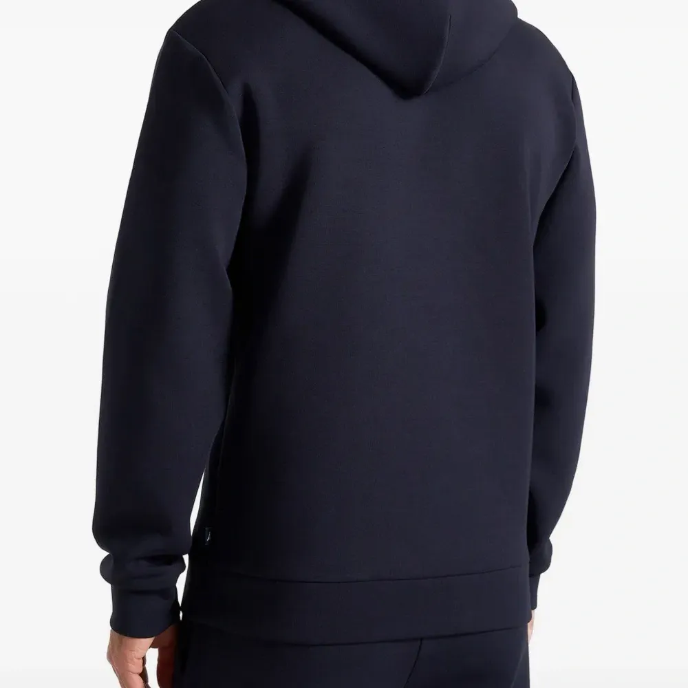темно-синяя толстовка с нашивкой, карманом-кенгуру и длинными рукавами