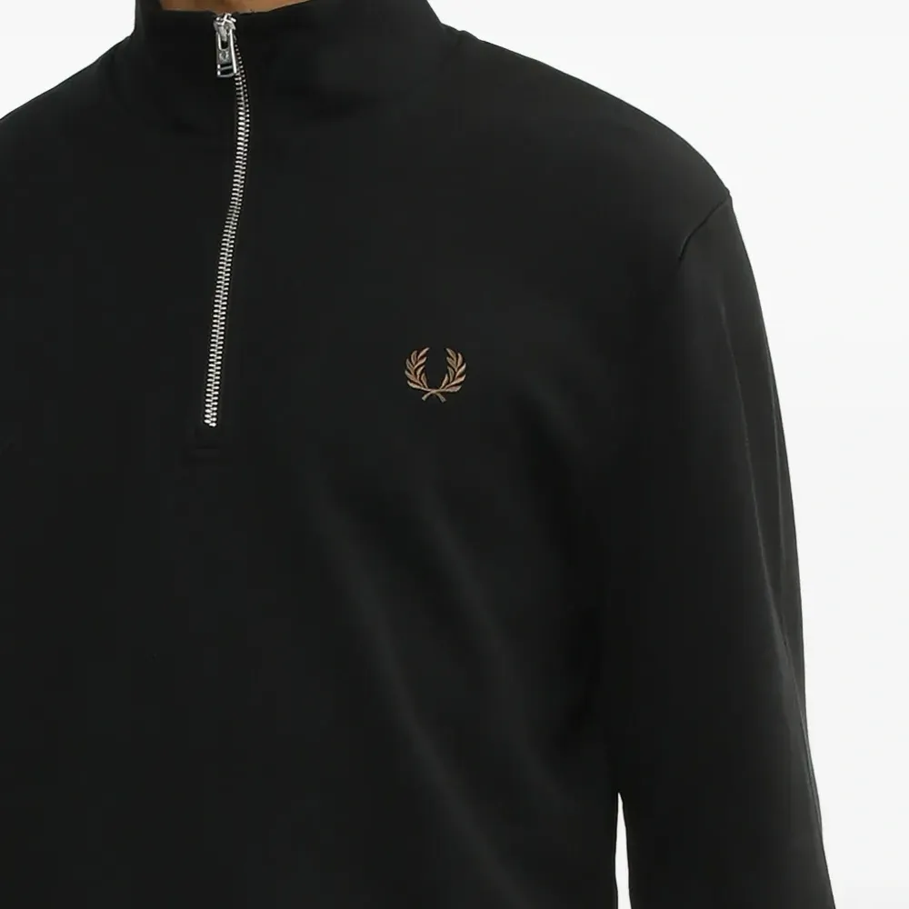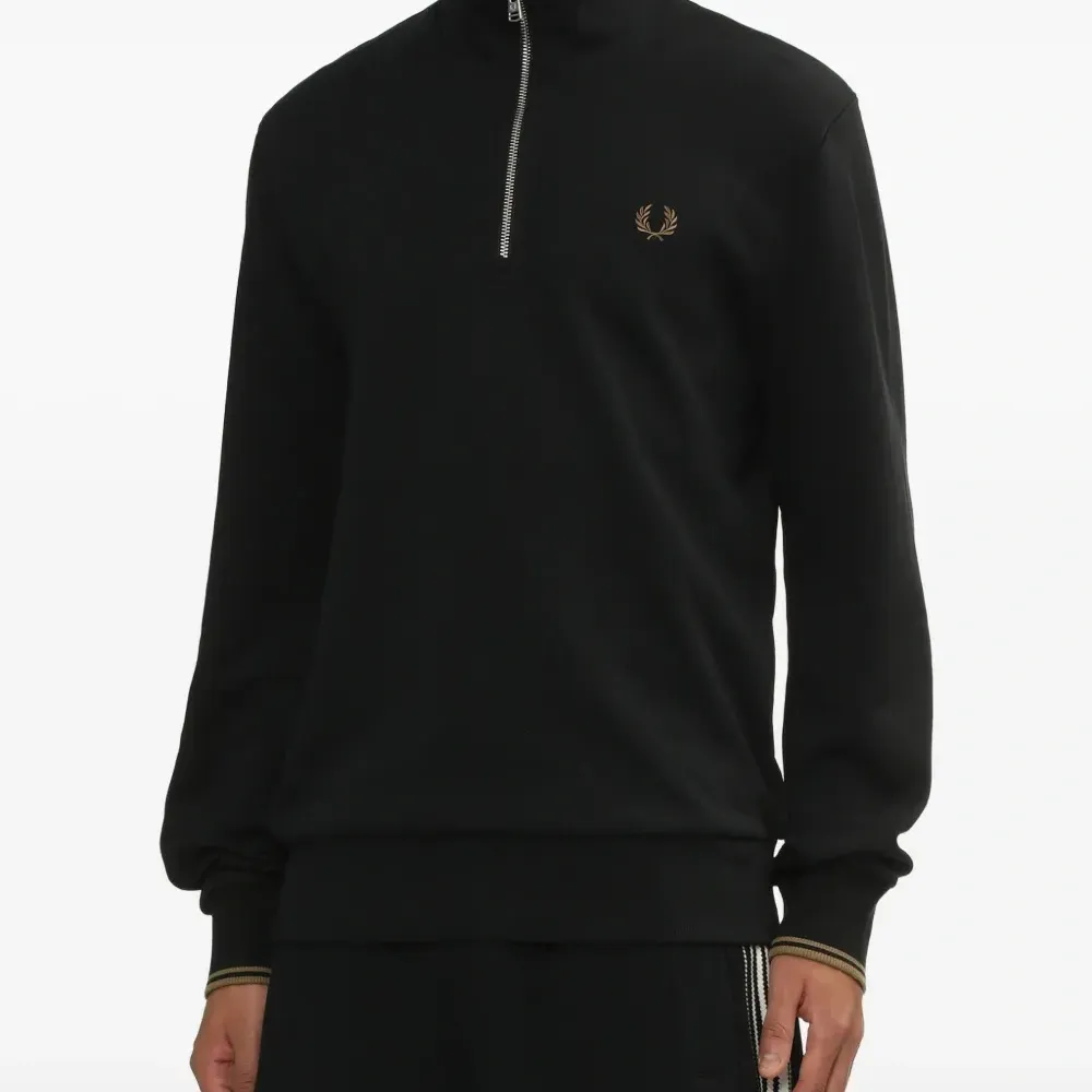 черный застежка-молния до середины рубчатые манжеты вышитый логотип длинные рукава хлопковый материал