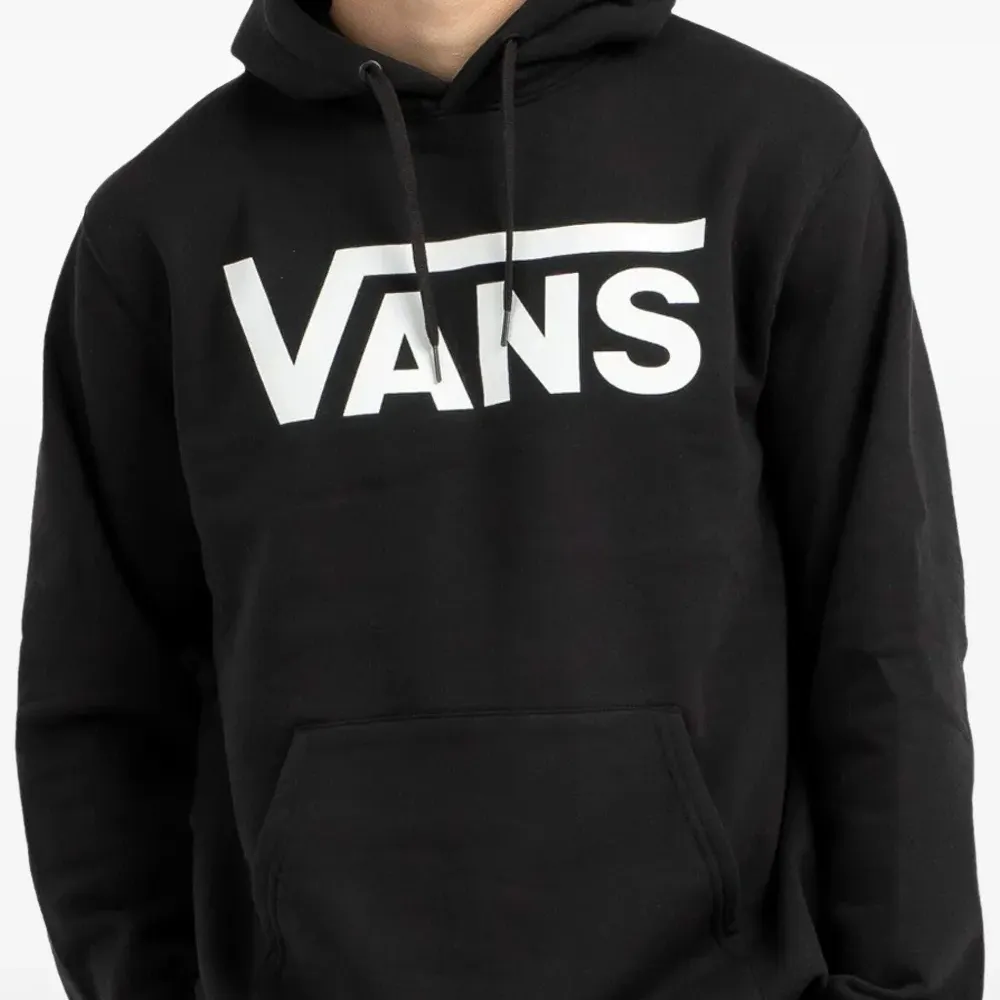 чёрное худи с принтом-логотипом, длинные рукава, ребристый низ, ребристые манжеты
