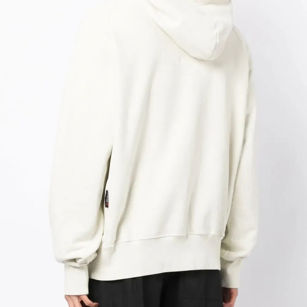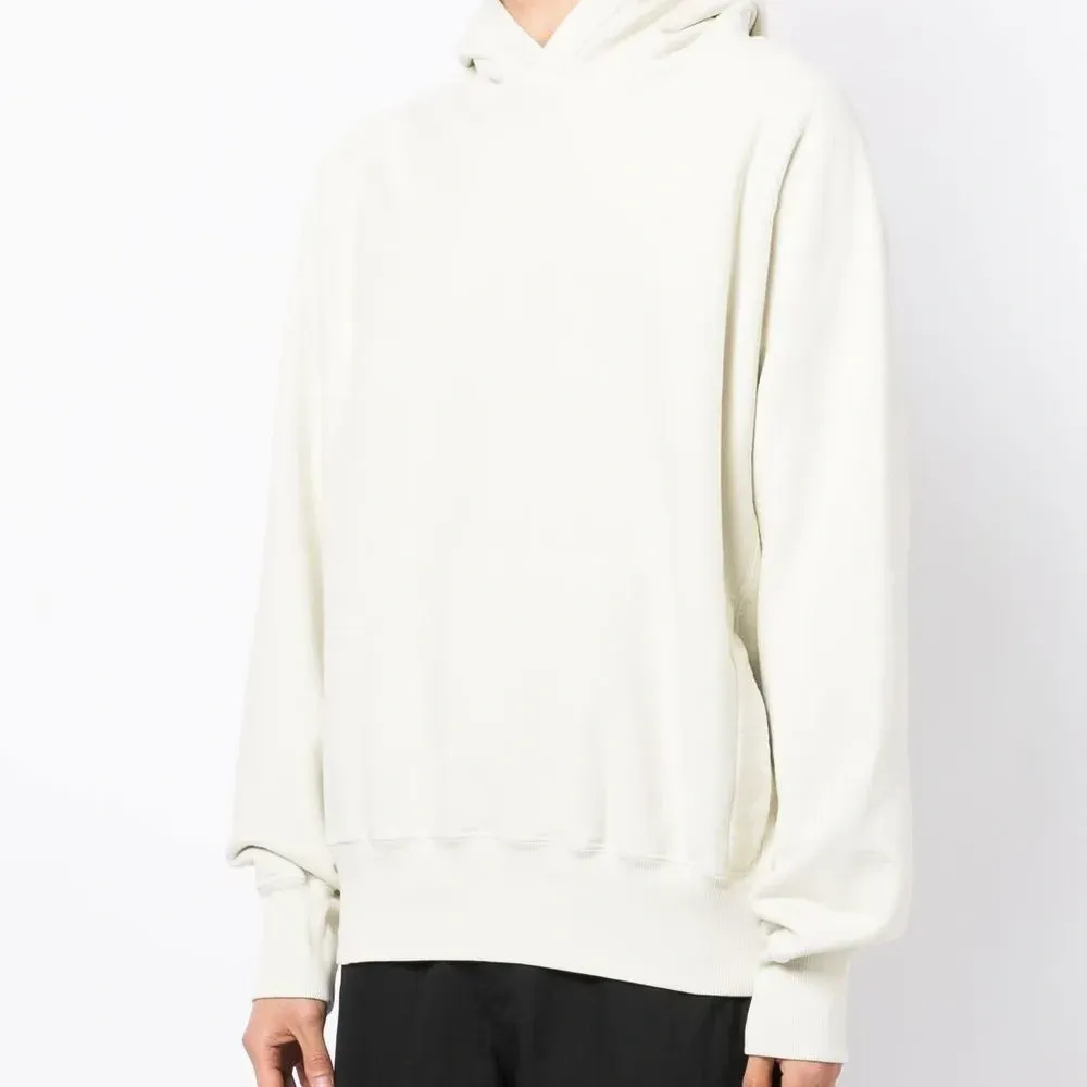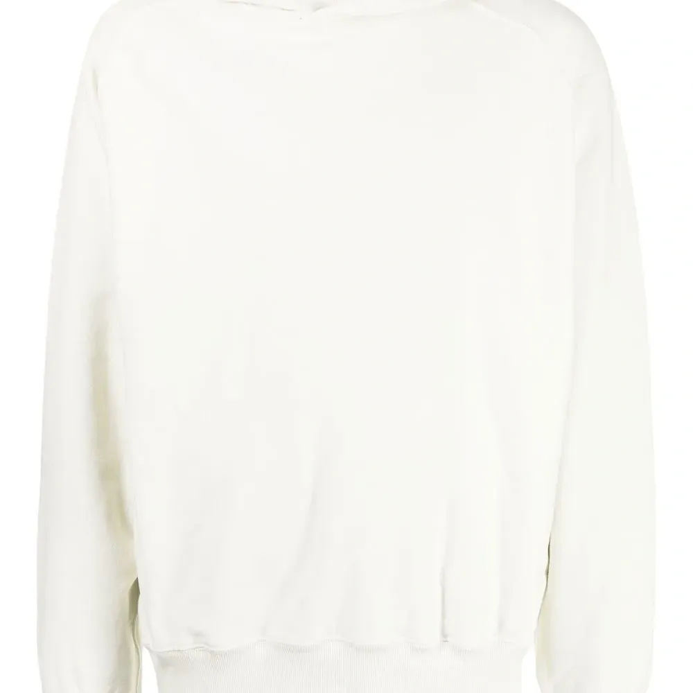 Белый, хлопок, круглый вырез, классический капюшон, длинные рукава реглан, манжеты в рубчик и подол в рубчик.