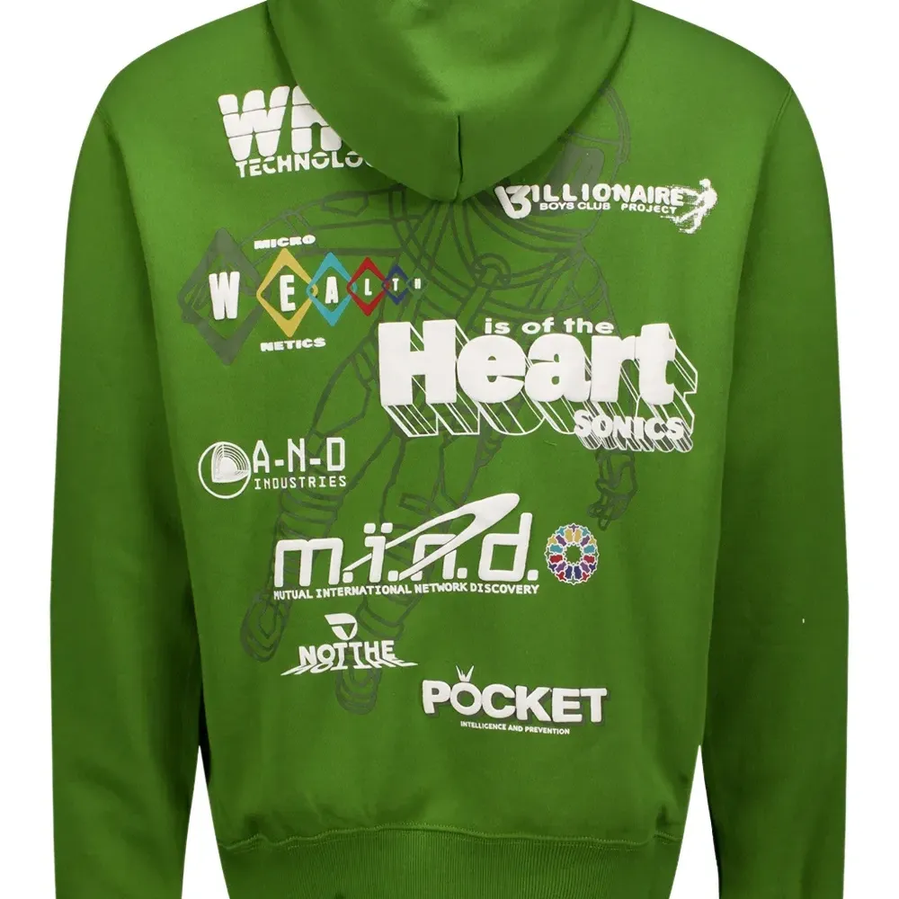 зеленое худи с графическим принтом, кулиской, длинными рукавами, передним карманом-кенгуру и ребристым низом