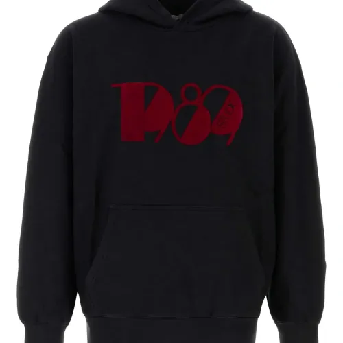 черный хлопок капюшон карман-кенгуру отделка с логотипом резинка по краю