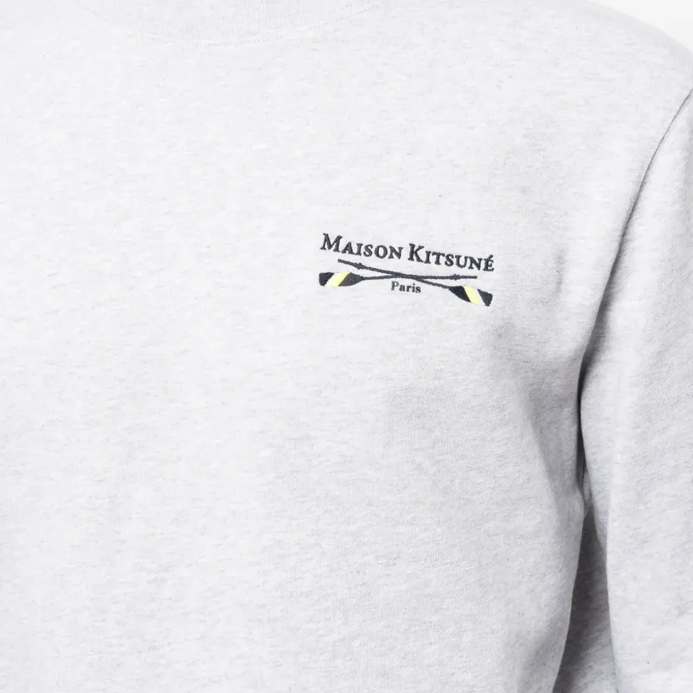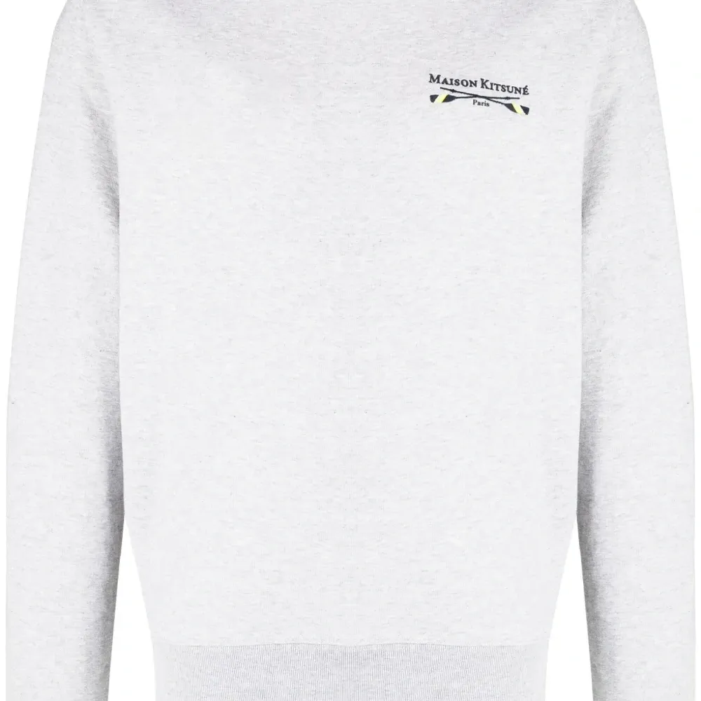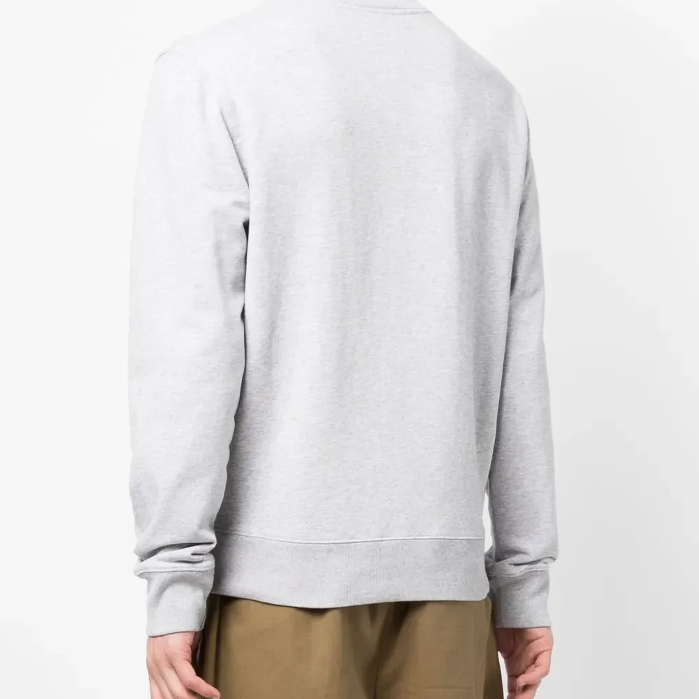Светло-серый, хлопок, эффект меланж, вышитый логотип на груди, круглый вырез и длинные рукава.