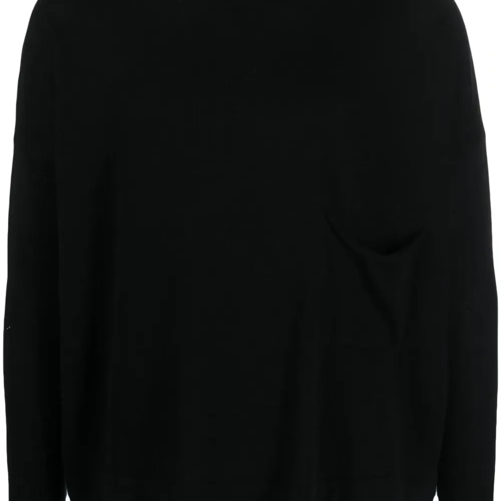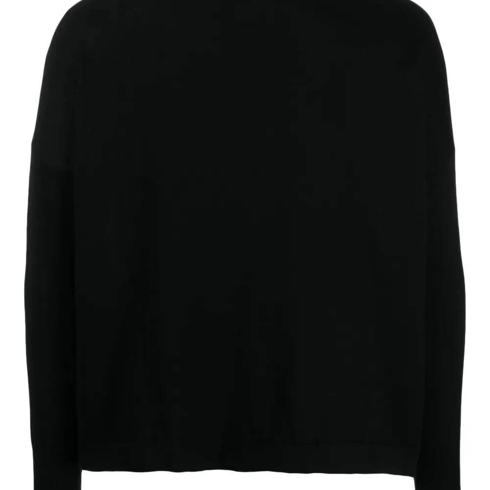 Черный, хлопок, тонкая вязка, вырез-лодочка, длинные рукава и прямой подол.