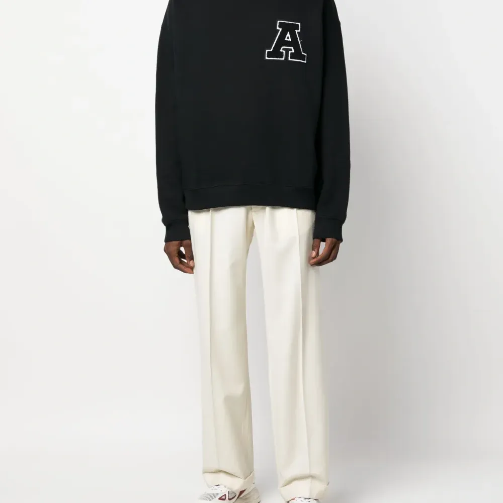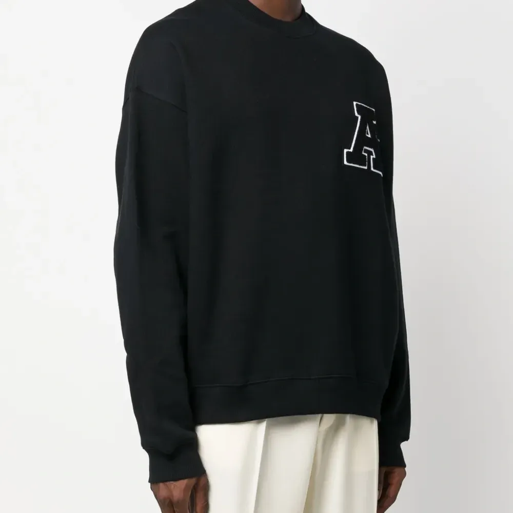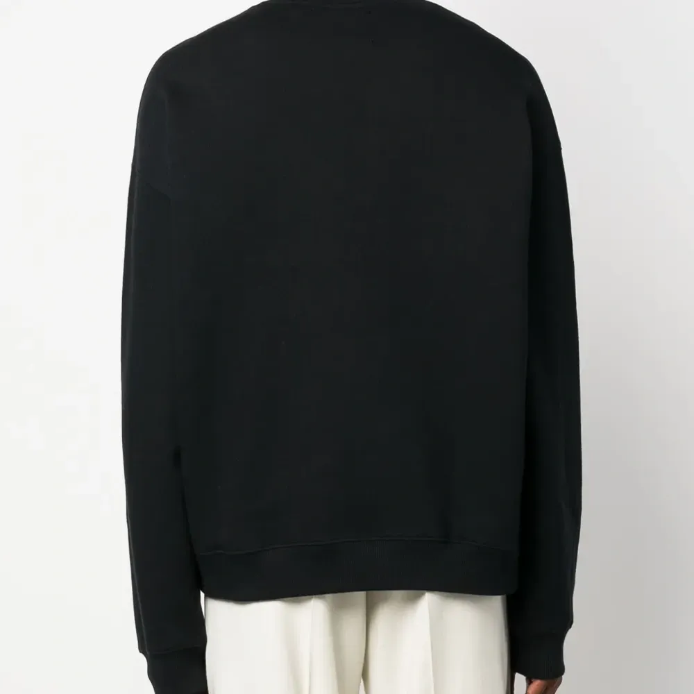 Черный, органический хлопок, нашивка с логотипом на груди, круглый вырез, длинные рукава, прямой подол и края в рубчик. Узнать больше о том, какие товары получают отметку «Ответственный выбор», можно из материала «Как мы оцениваем экологичность и этичность».