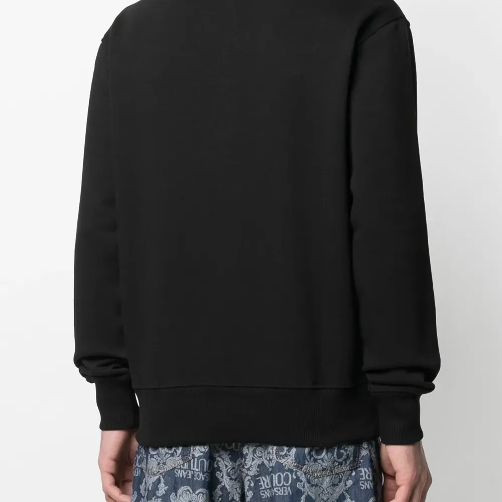 черный хлопок логотип спереди круглый вырез длинные рукава рукава с узкими манжетами