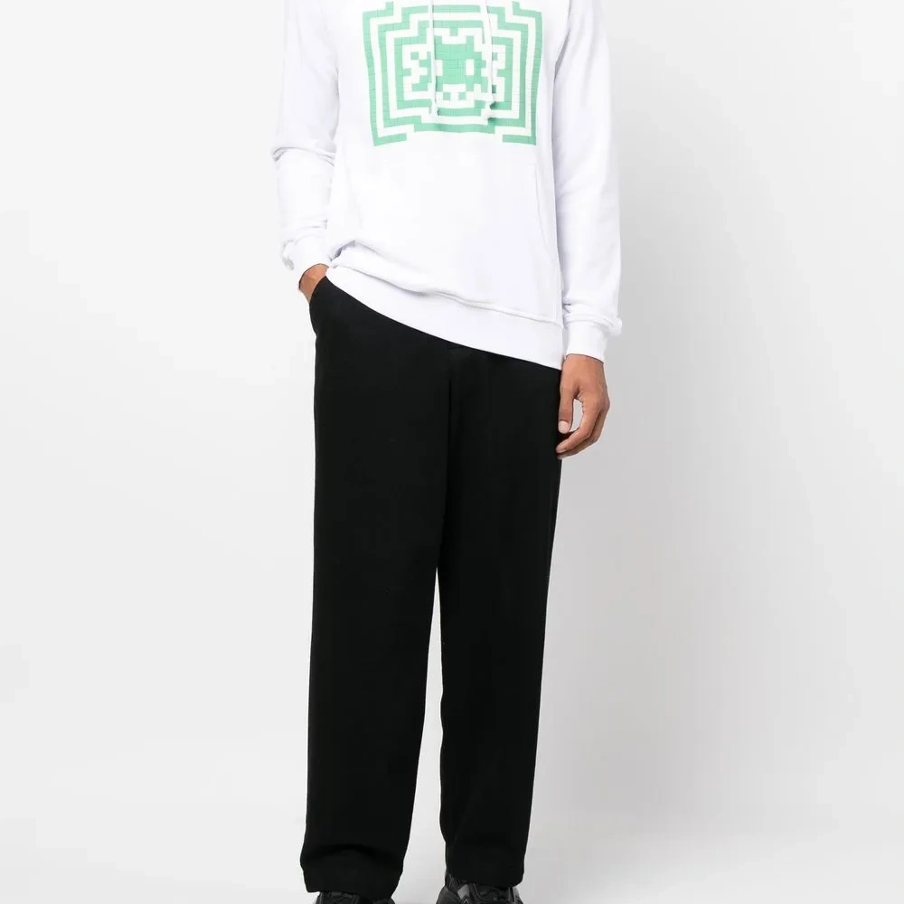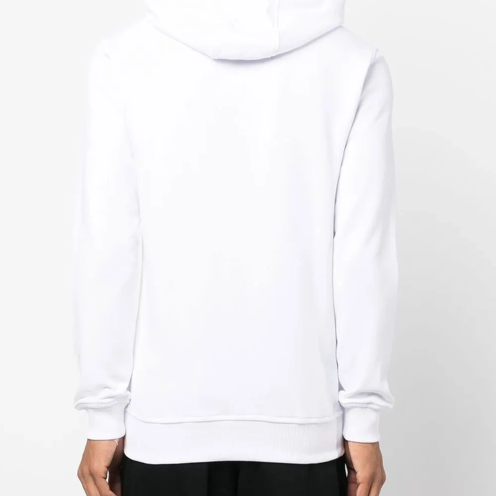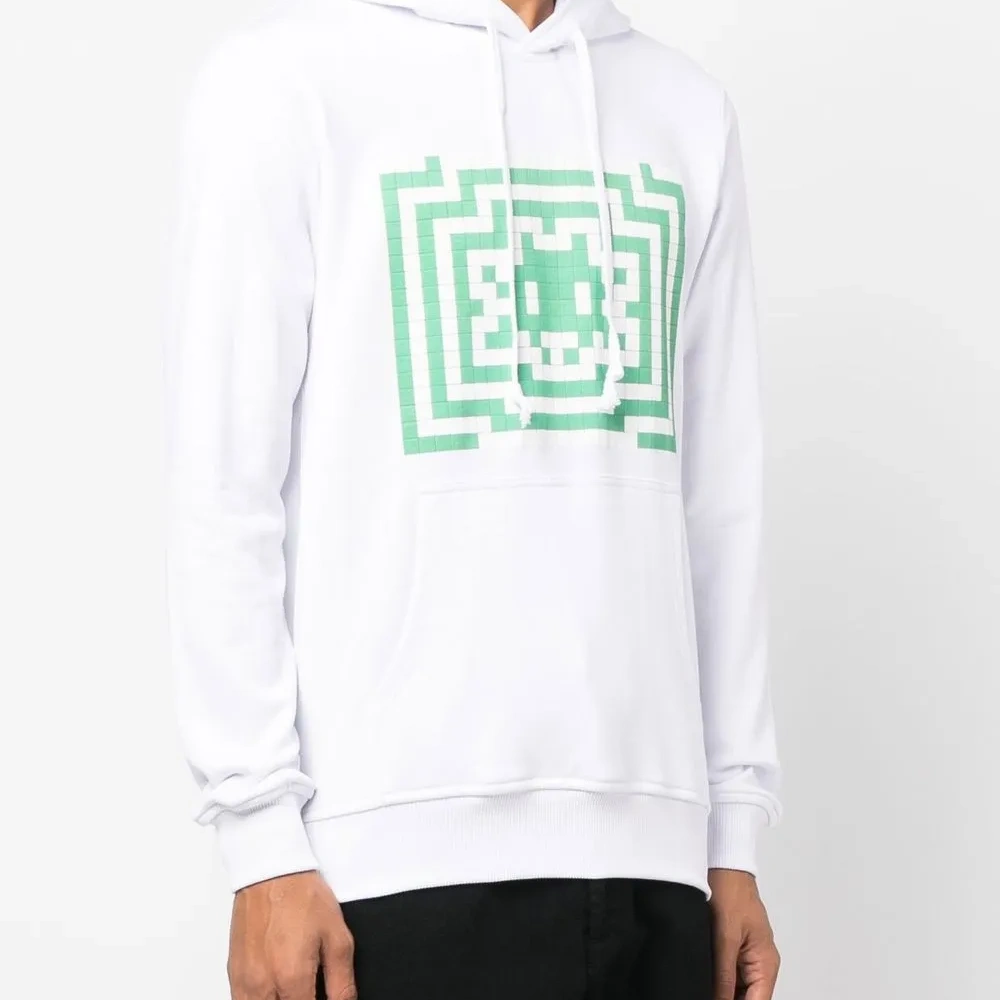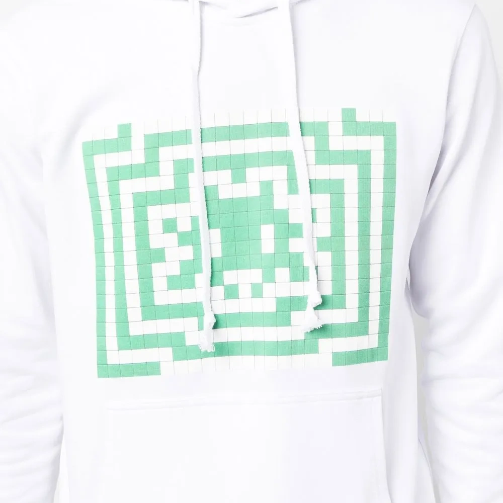 Расцветка Cloud White, хлопок, ткань джерси, графичный принт спереди, объемный капюшон на шнурке, карман-муфта и прямой подол.