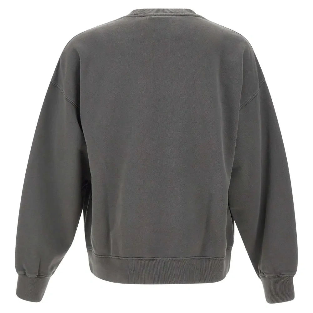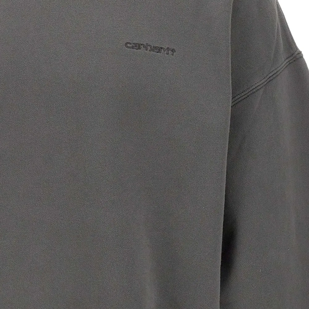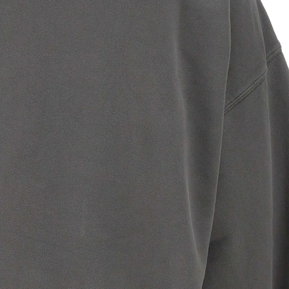 серый свитшот с вышитым логотипом, круглый вырез, длинные рукава, ребристые манжеты, ребристый низ