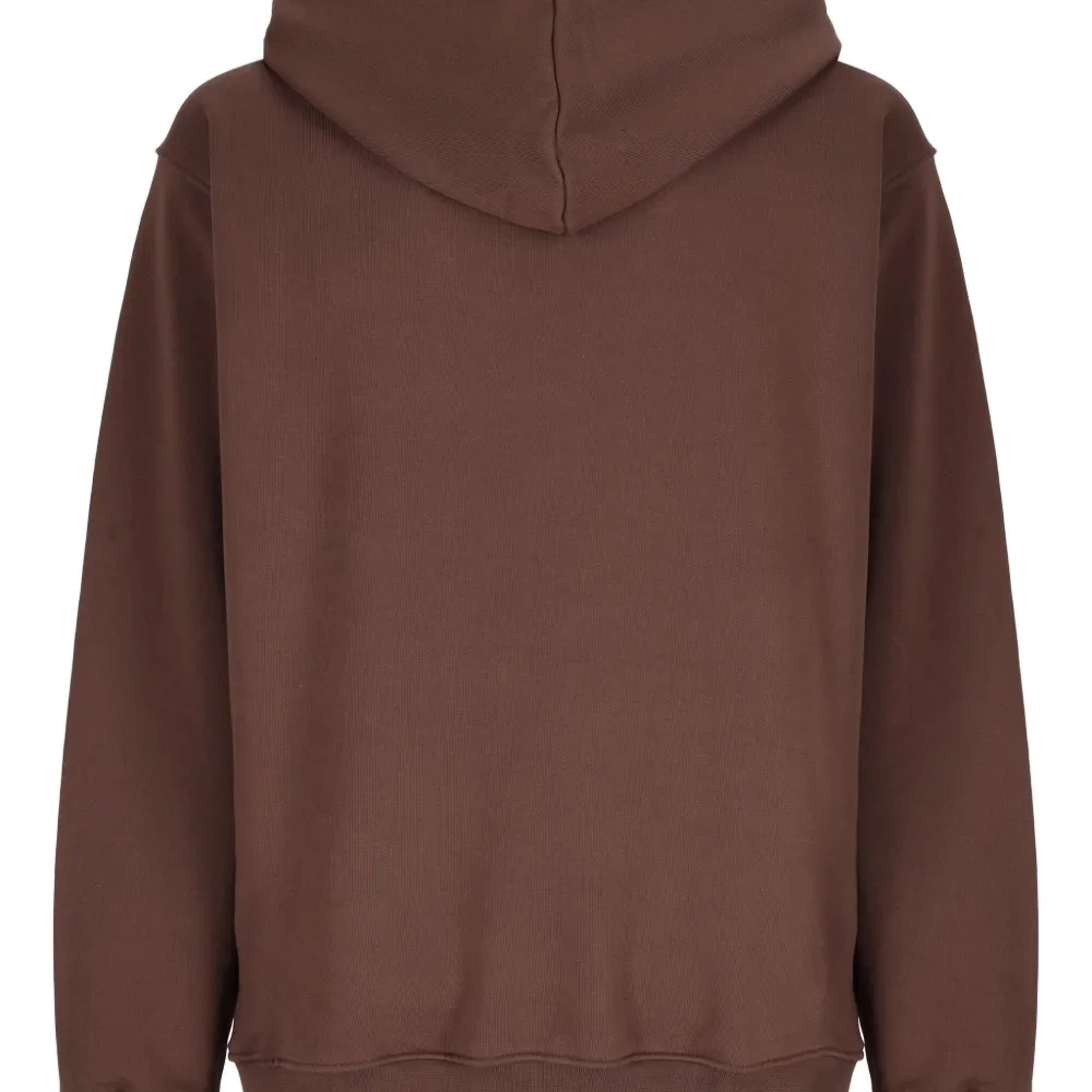 коричневый, вышитые детали, передний накладной карман, капюшон, ребристые манжеты и нижний край