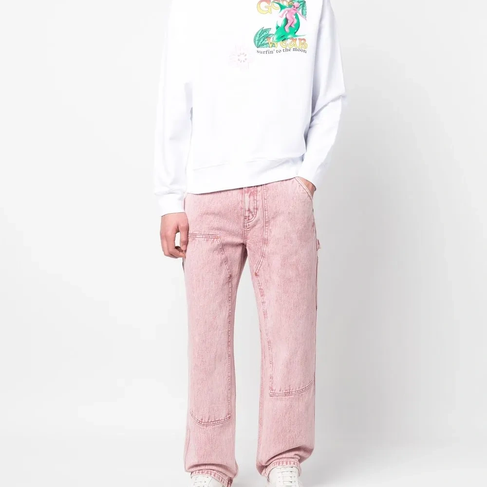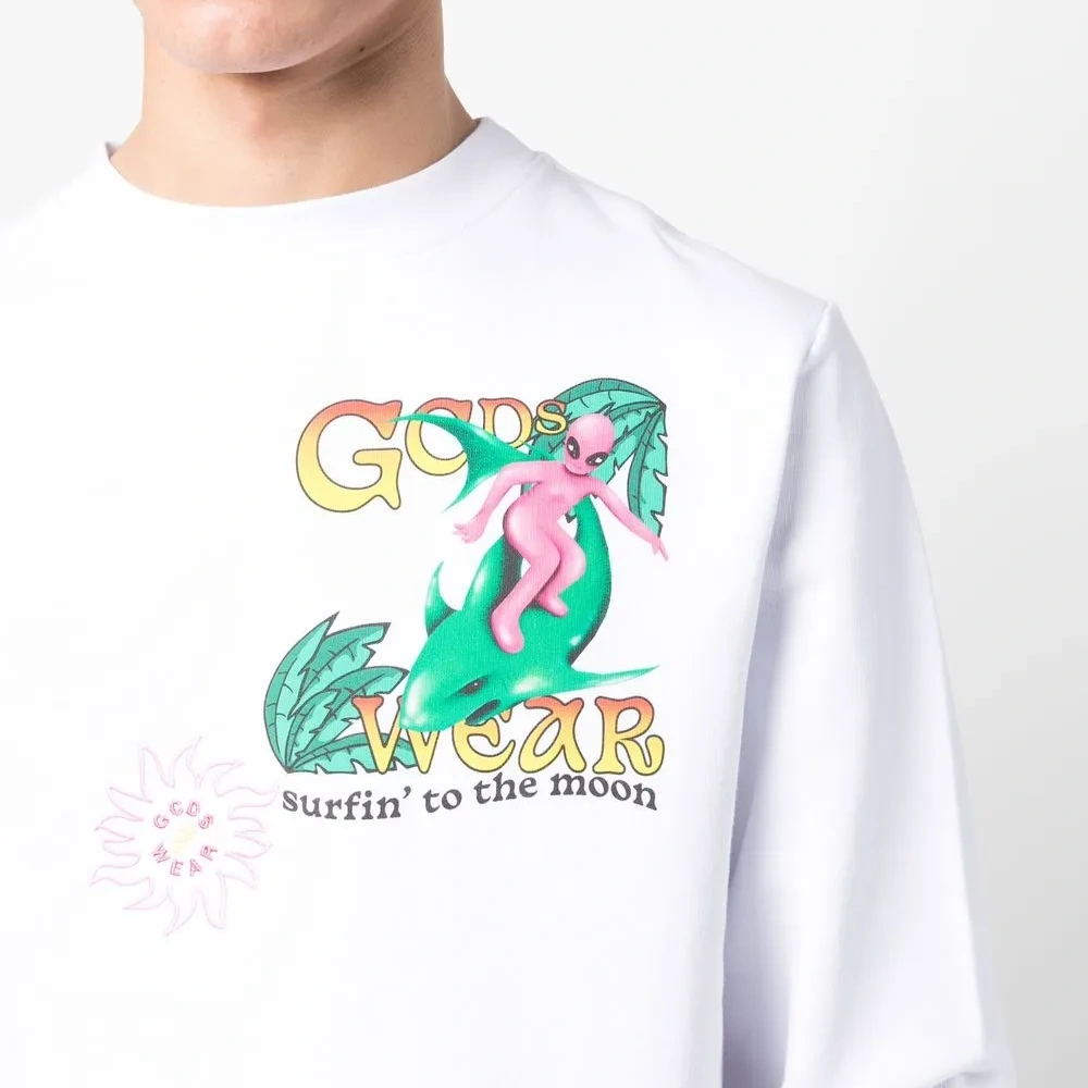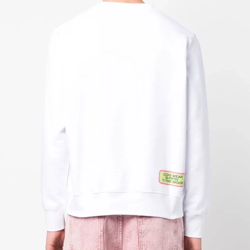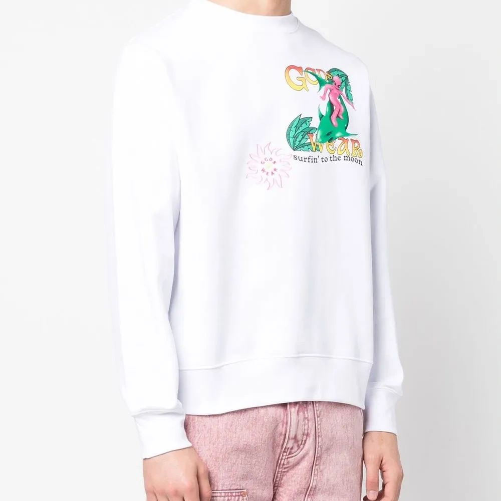 Белый/разноцветный, хлопок, графичный принт спереди, вышитый логотип спереди, принт с надписью спереди, принт с надписью сзади, круглый вырез, длинные рукава и прямой подол.