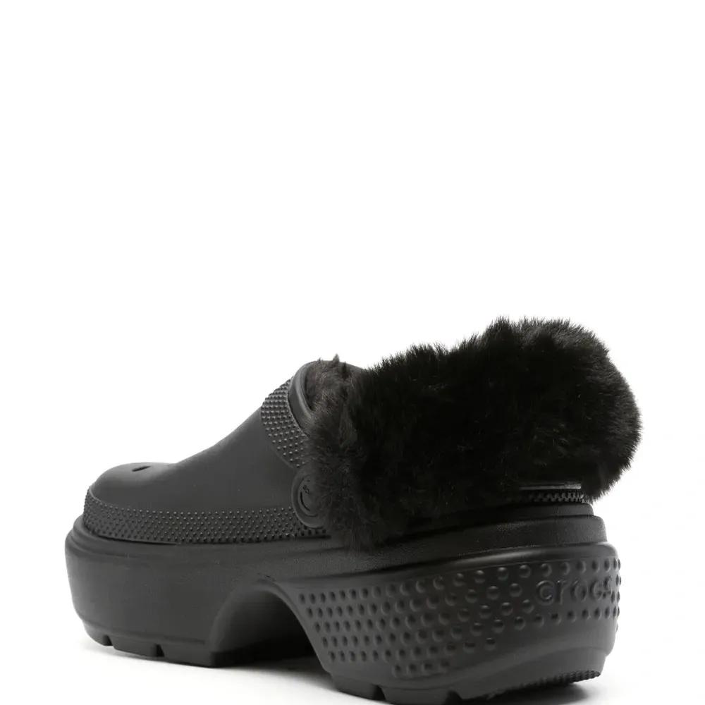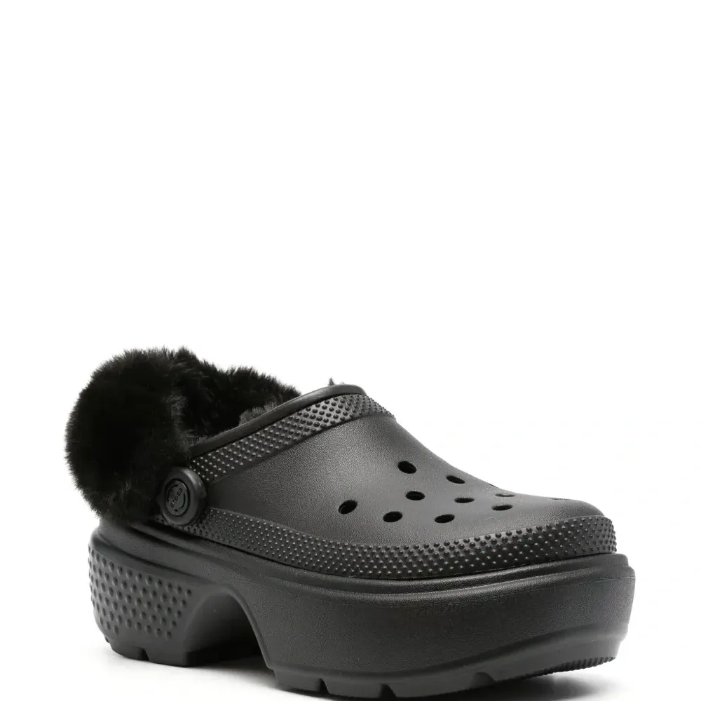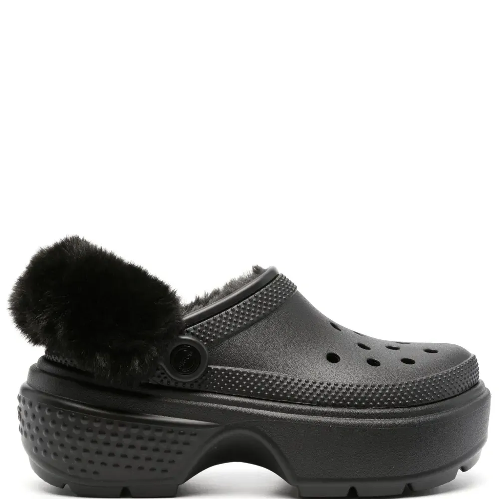 Кроксы на платформе со вставкой из искусственного меха