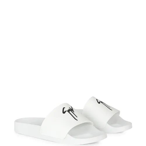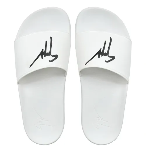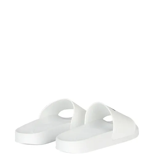 Логотип спереди, модель без застежки, открытый носок и резиновая подошва. Цвет: белый.