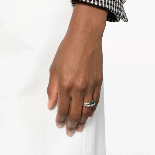 Изумрудно-зеленый, серебристый, родиевое покрытие, вставка с поделочным камнем, отделка кристаллами Swarovski, коктейльное кольцо, глянцевая фактура и модель без застежки.
