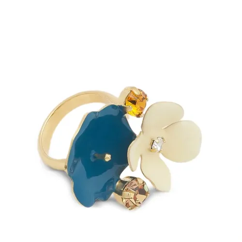 Кольцо с эмалевым цветком и стразами