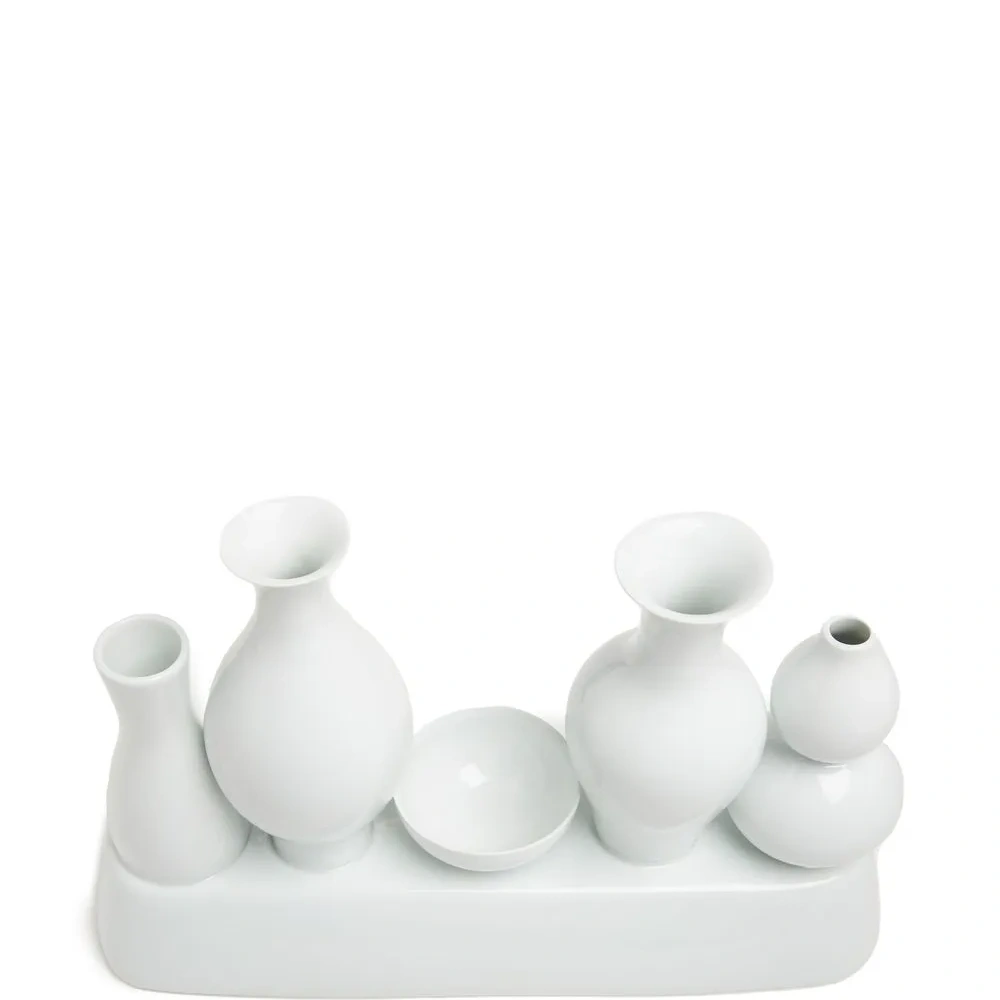 Белый, фарфор, глянцевая фактура и асимметричная форма.