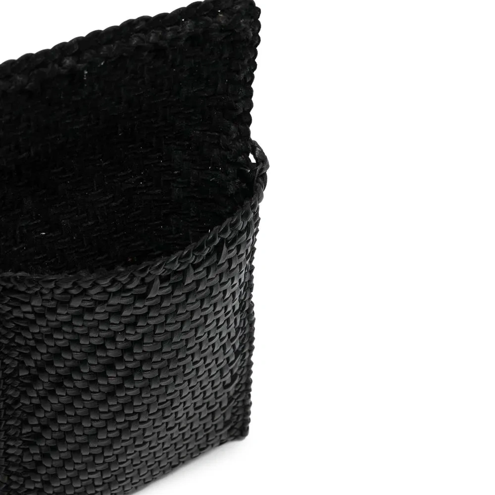 Черный, кожа, прямоугольная форма, переплетенный дизайн, откидной клапан и ремень на плечо.