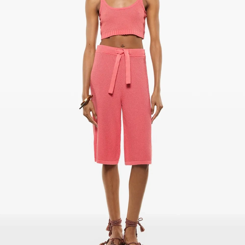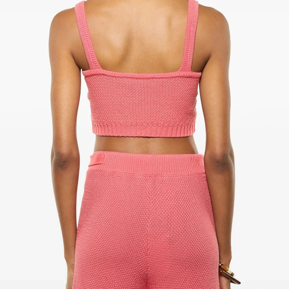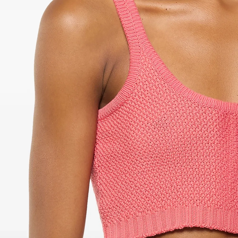 розовый трикотажный топ без рукавов с ребристым подолом и ребристым вырезом