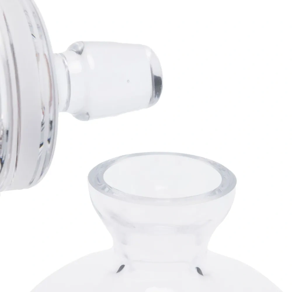 Стекло, прозрачный материал, принт с логотипом и крышка.