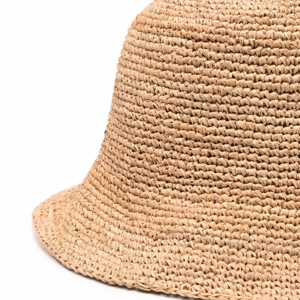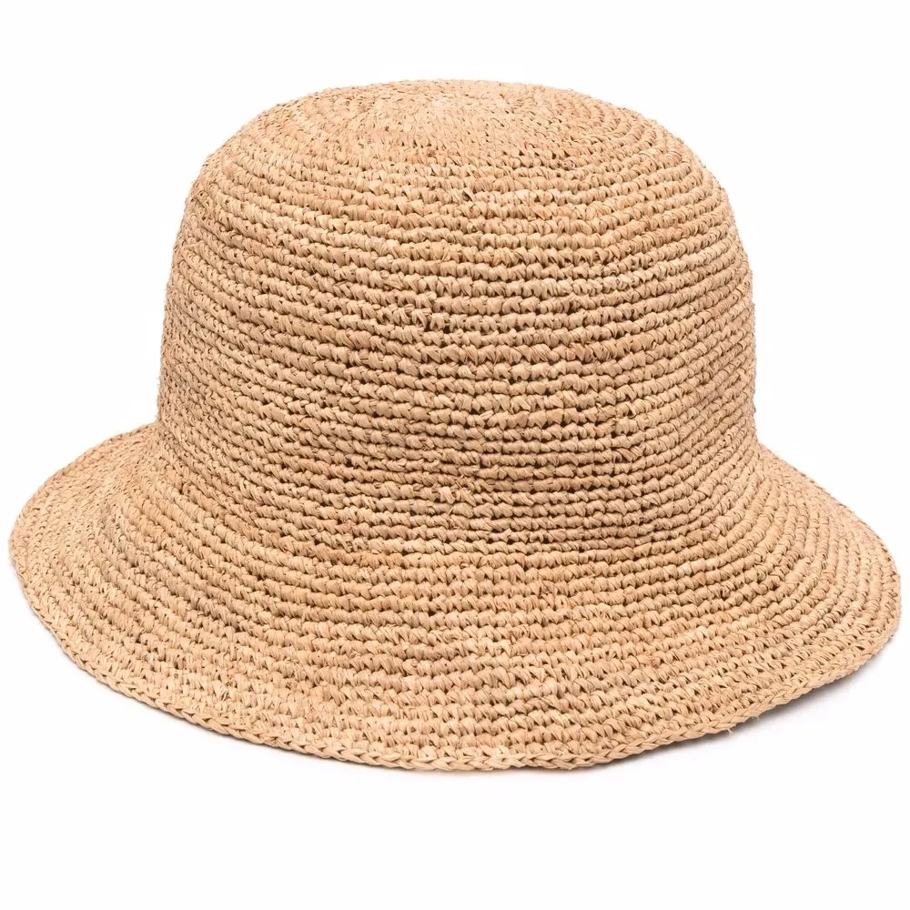 Плетеный дизайн из рафии, узкие опущенные поля и однотонная расцветка. Цвет: нейтральные цвета.