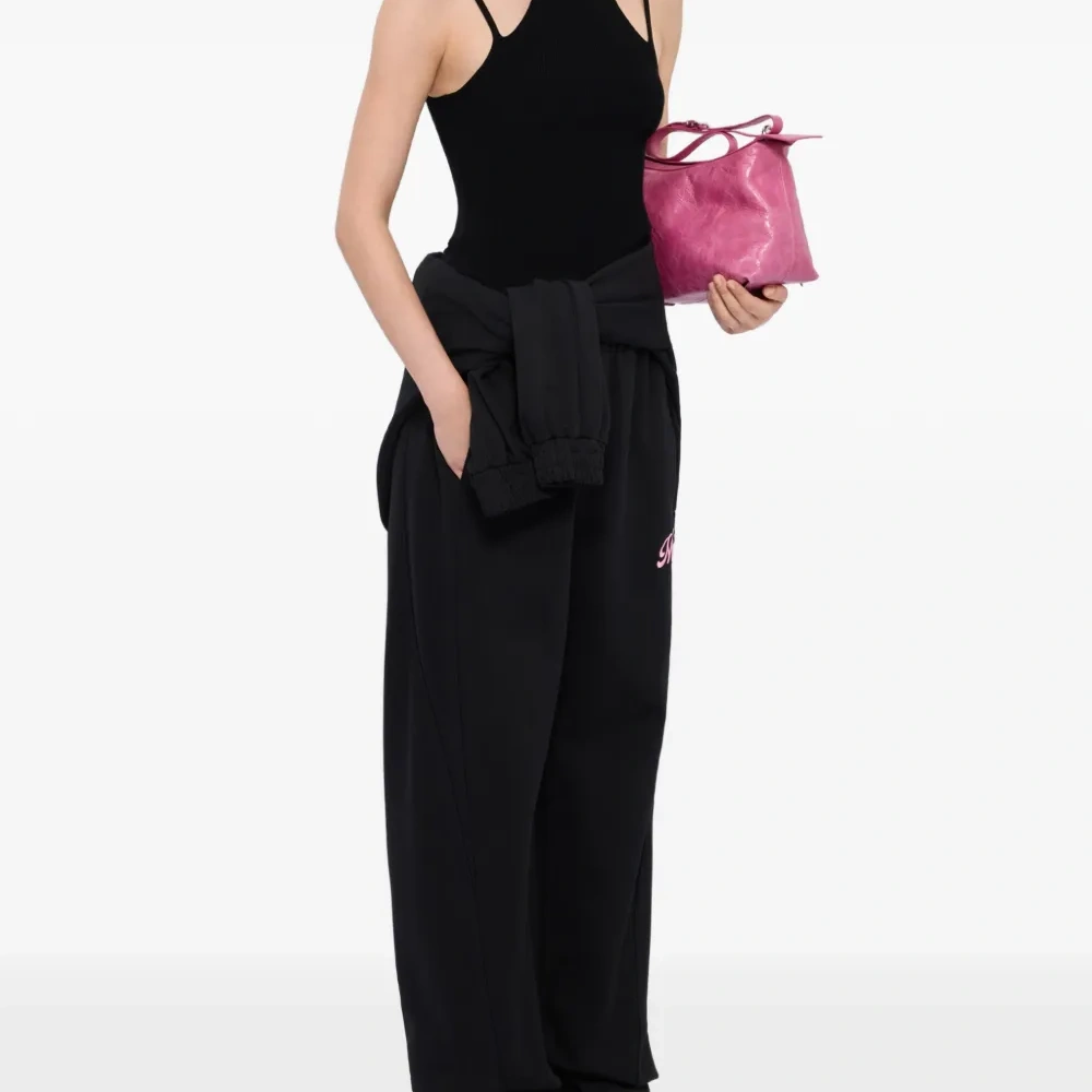 черный трикотажный топ без рукавов с вырезами, круглым вырезом горловины и логотипом