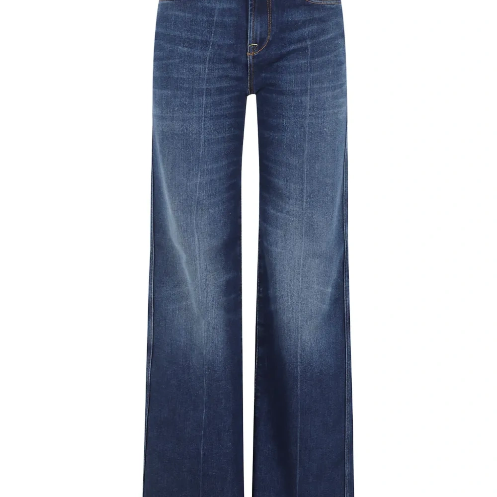 синий цвет, отделка разными вставками, классические пять карманов, шлевки для ремня, застежка на пуговицу, прострочка
