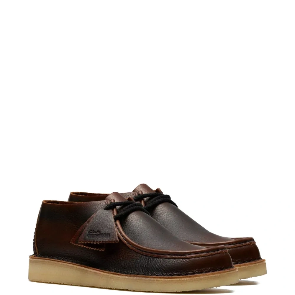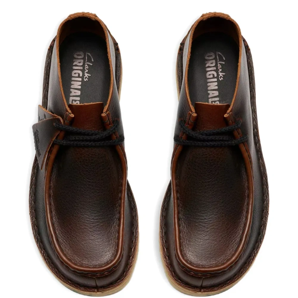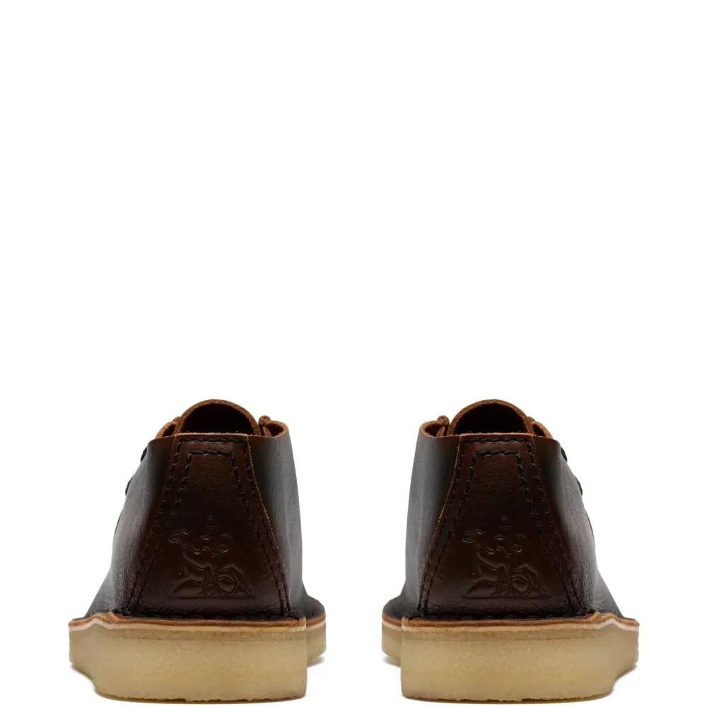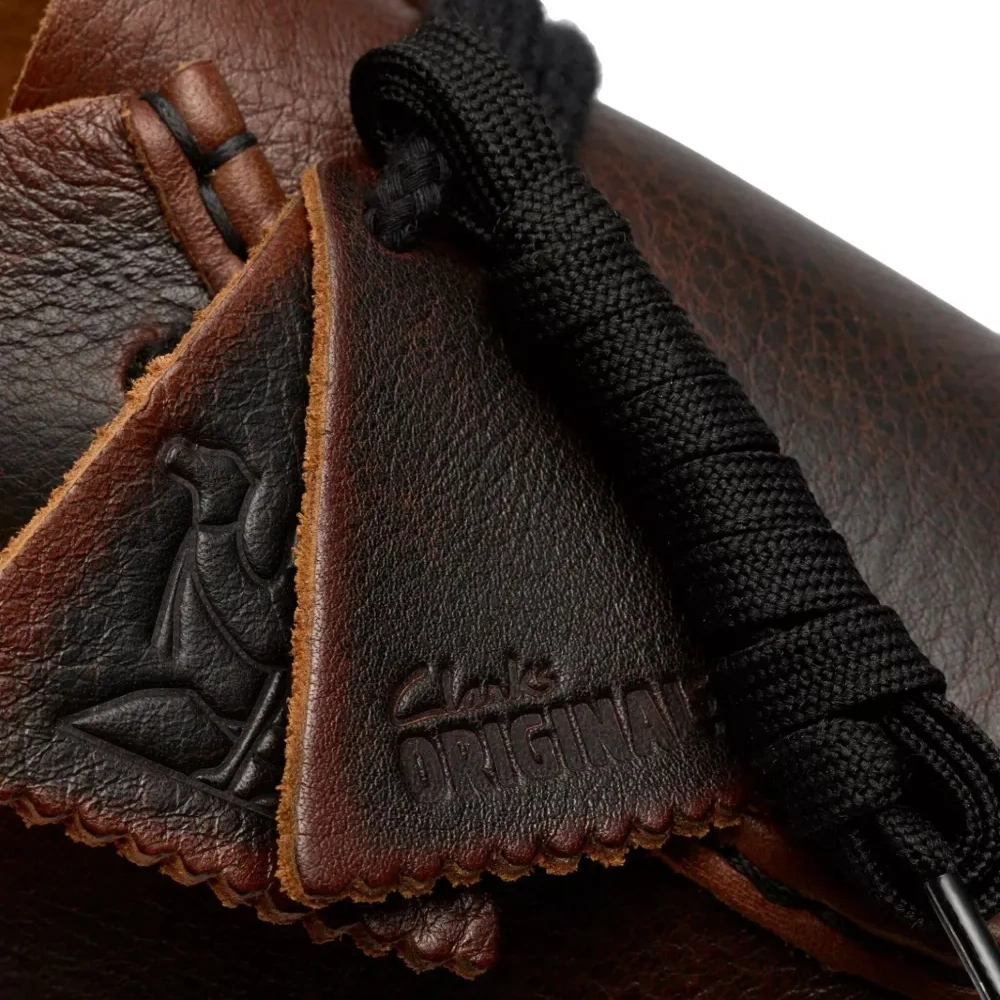 темно-коричневые кожаные ботинки с шнуровкой, прострочкой, логотипом на ярлыке и закругленным носком