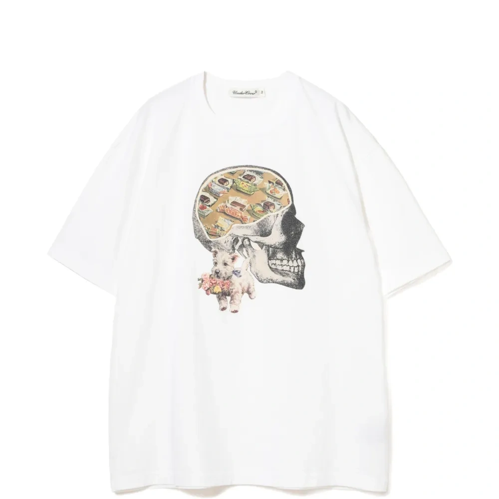 белая хлопковая футболка с графическим принтом, короткими рукавами и круглым вырезом