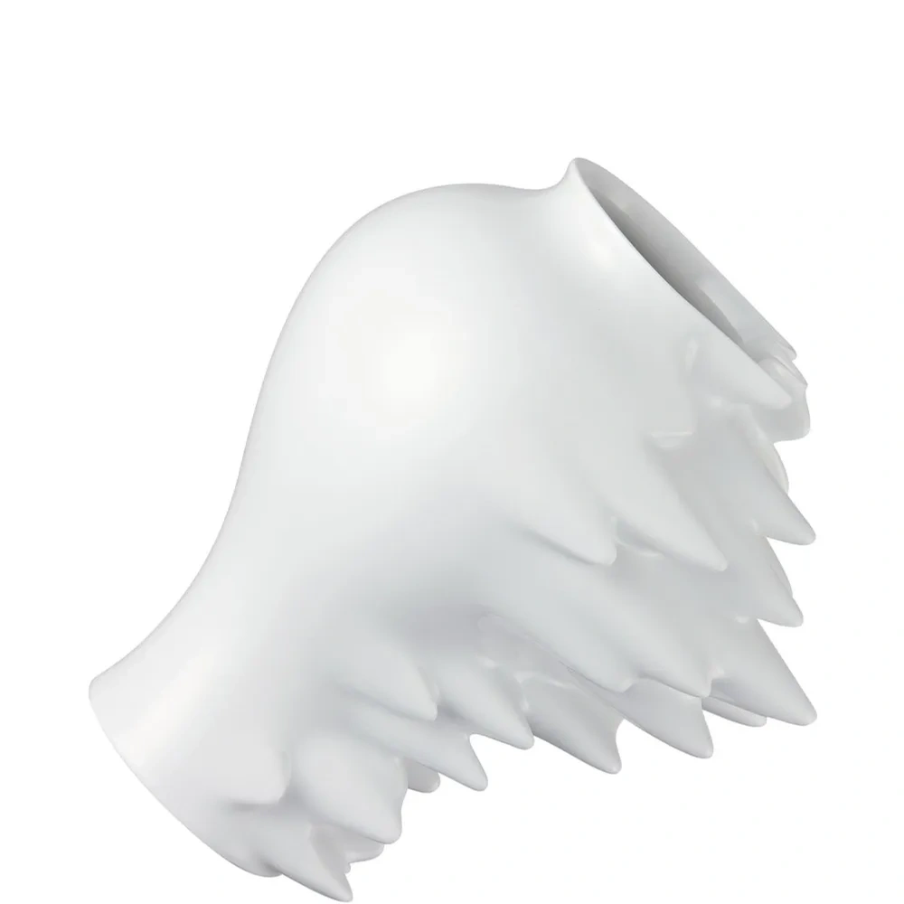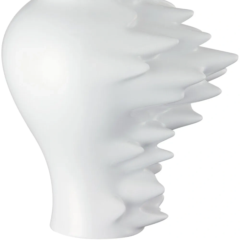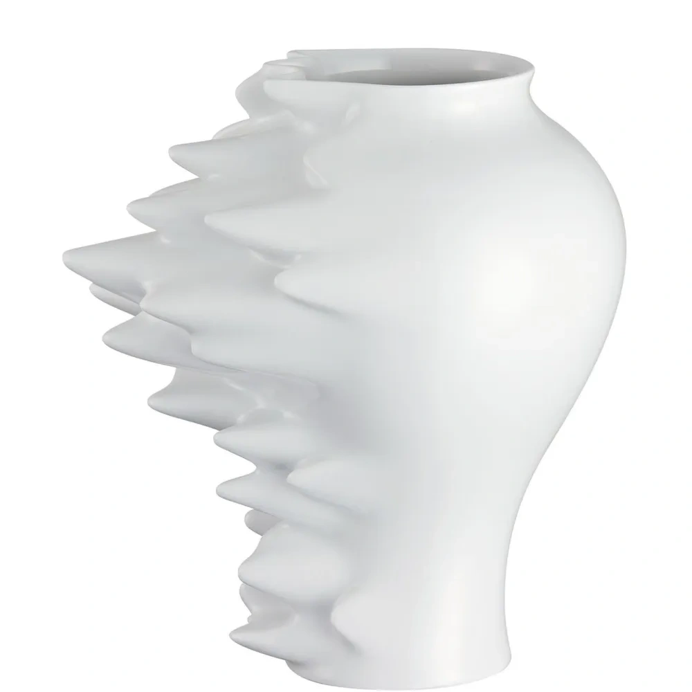 Белый, фарфор, глянцевый финиш и асимметричная форма.