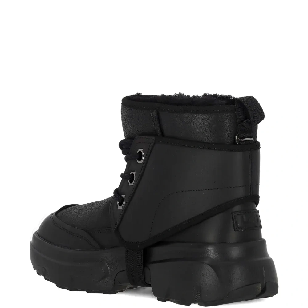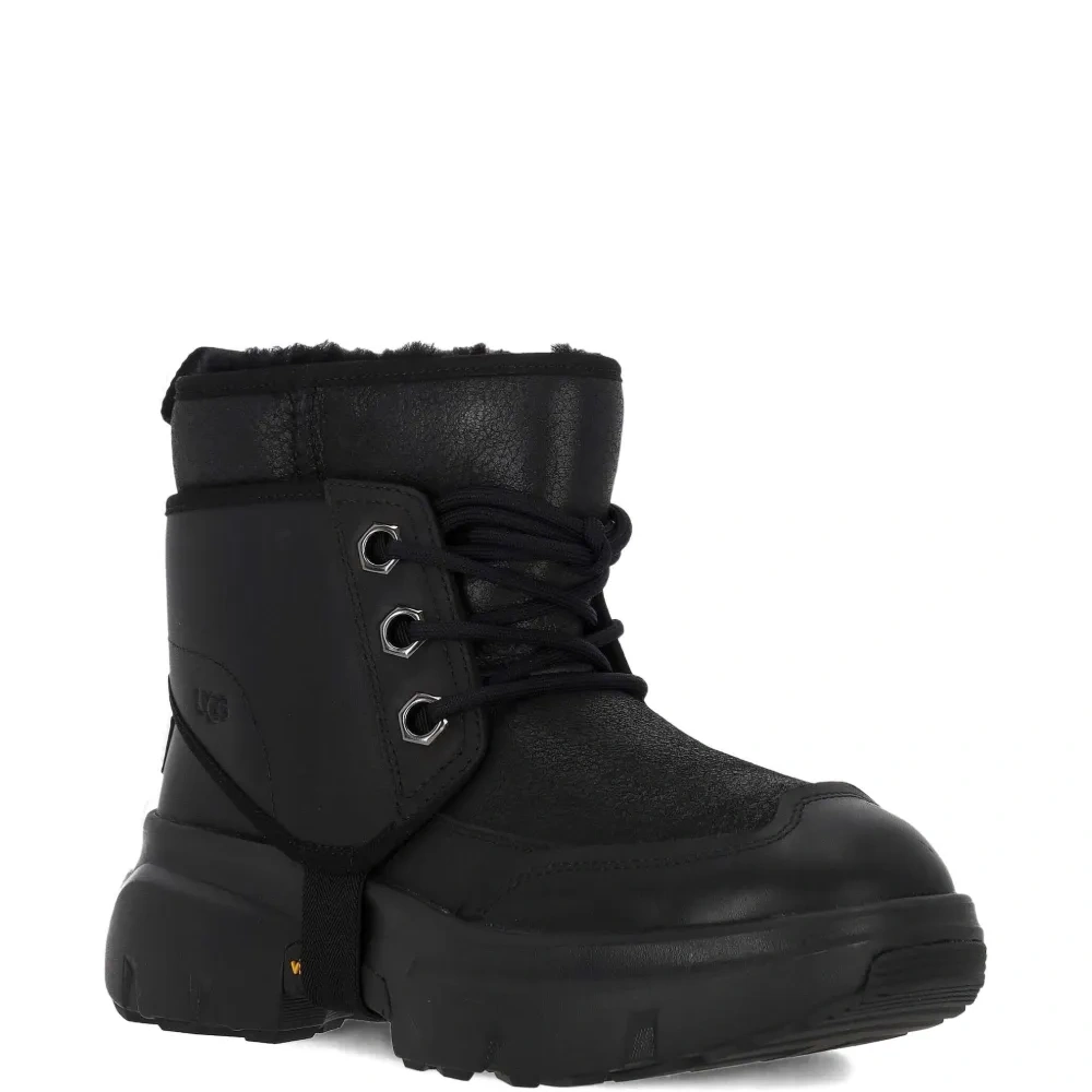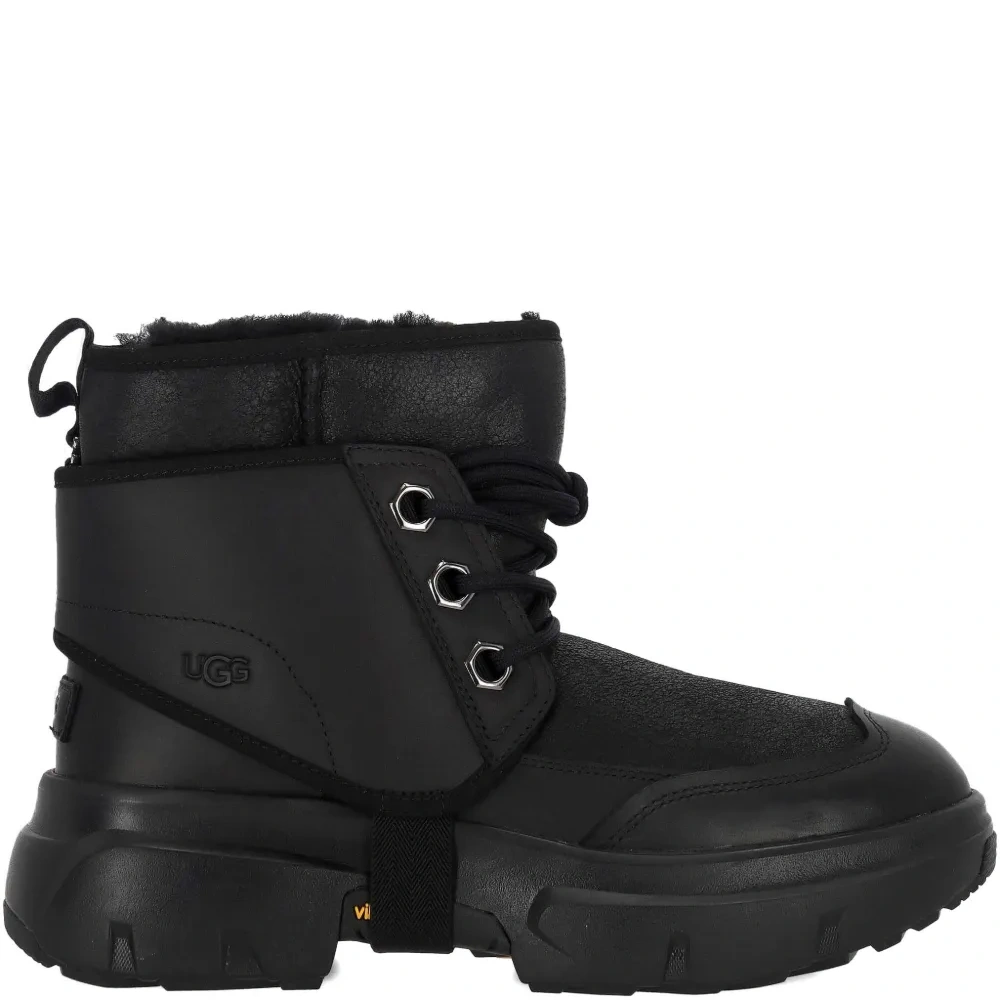 черная шнуровка, петля на заднике, массивная подошва, круглый носок, металлические люверсы, тиснёный логотип, подошва Vibram® XS Trek Evo
