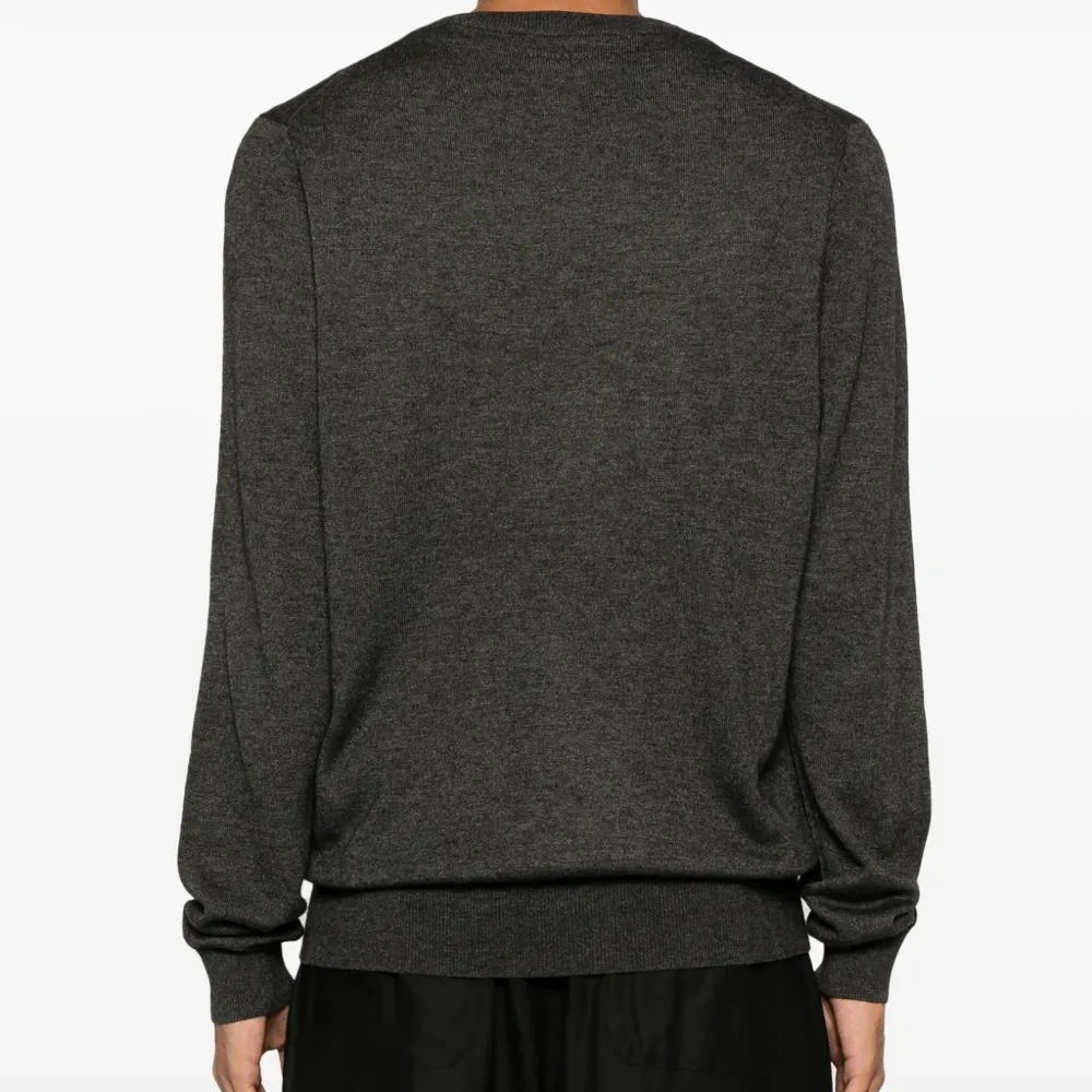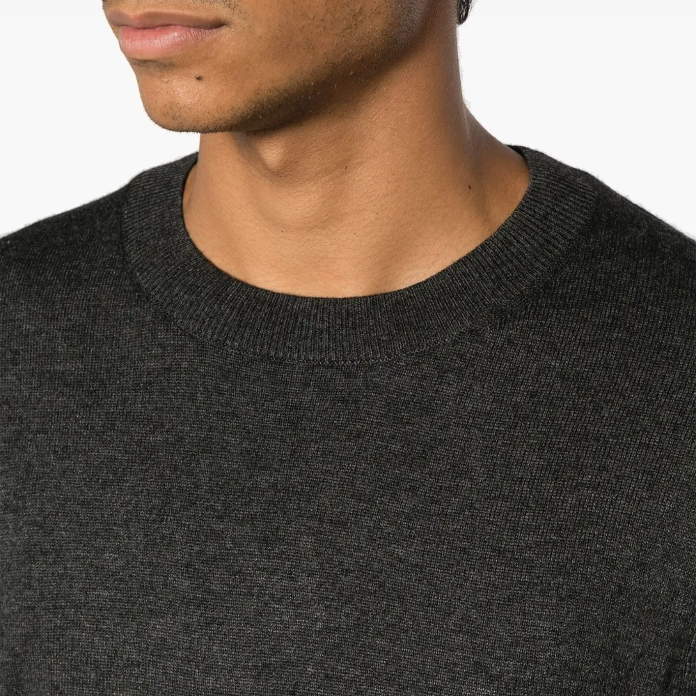 Антрацитово-серый, трикотажный материал, модель анорак, круглый вырез, длинные рукава и прямой подол.