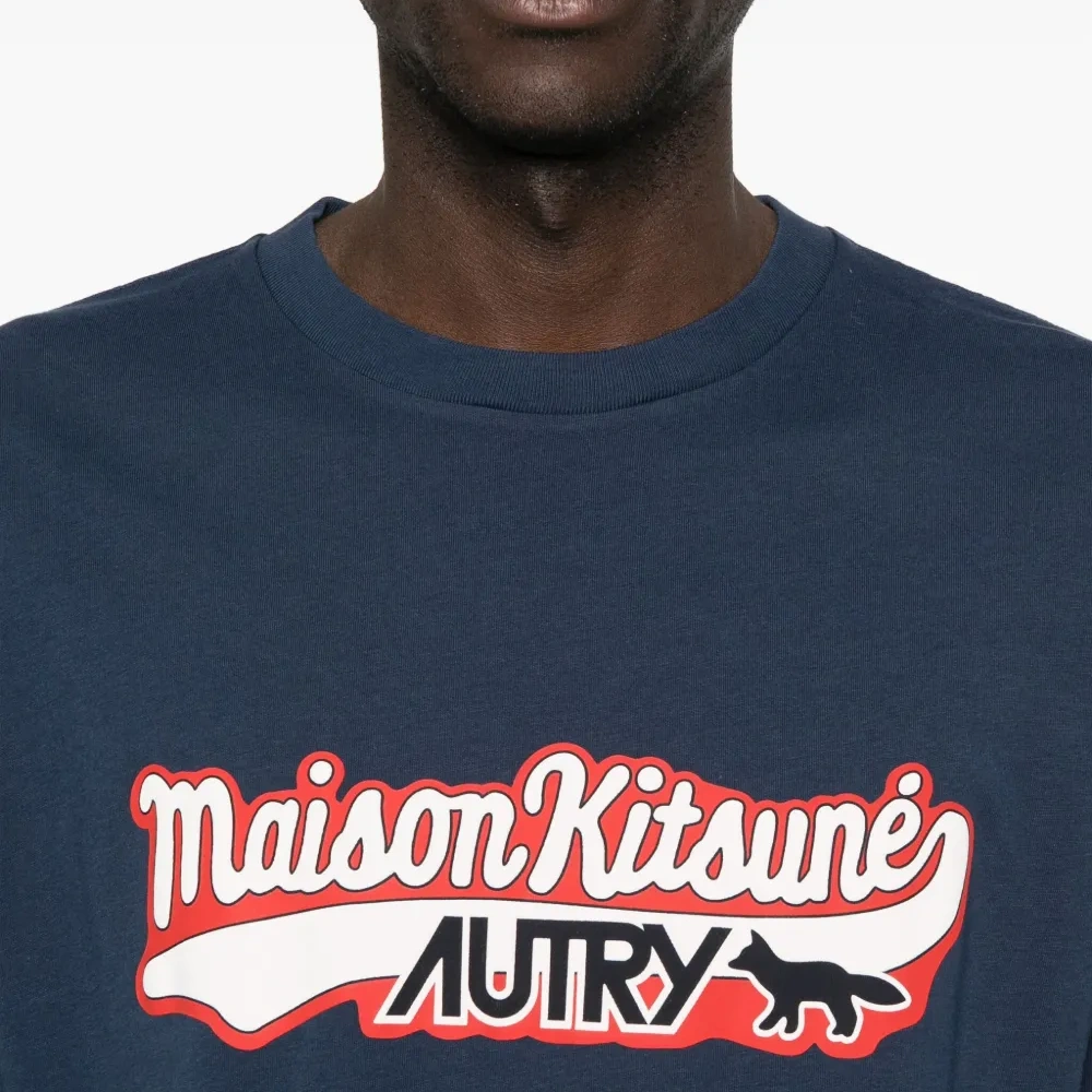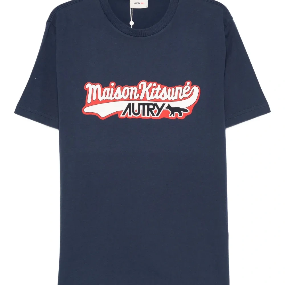 темно-синий принт с логотипом круглый вырез короткие рукава