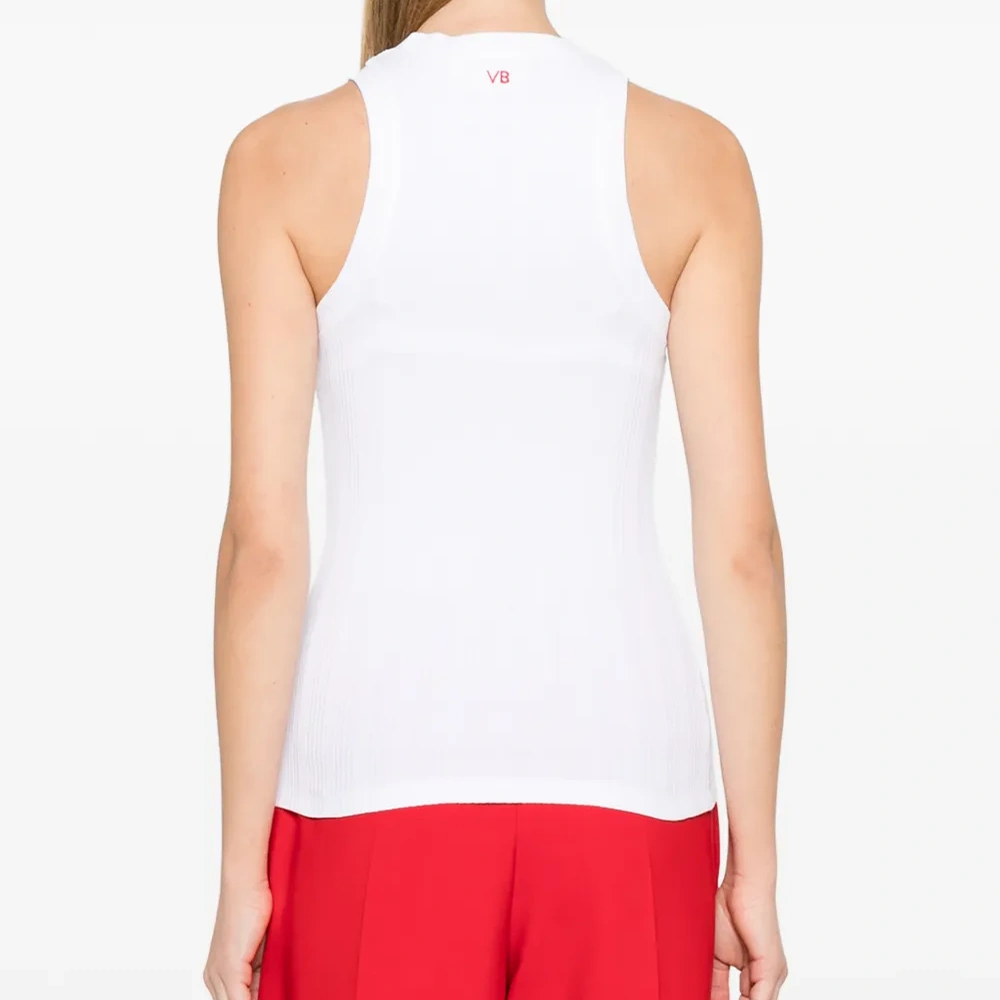 белый трикотажный топ без рукавов с круглым вырезом
