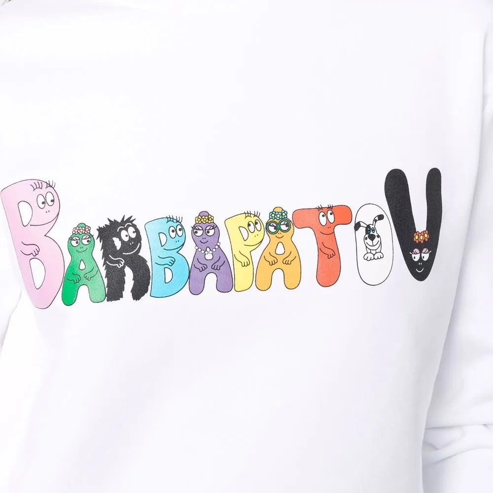 Принт с логотипом на груди, круглый вырез и длинные рукава. Цвет: белый.