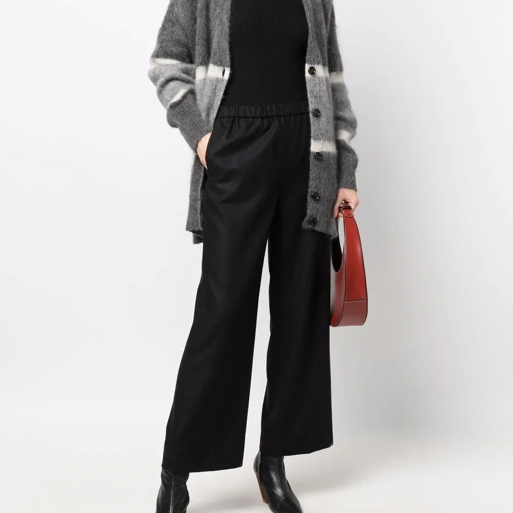 Эластичный пояс, свободный крой и укороченная длина. Цвет: черный.