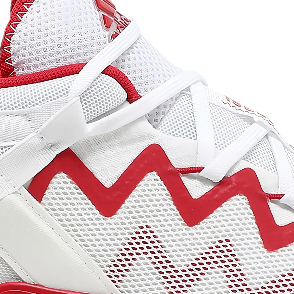 белый/красный зигзагообразный декор, шнуровка, вставки из сетчатого материала, логотип на язычке, резиновая подошва