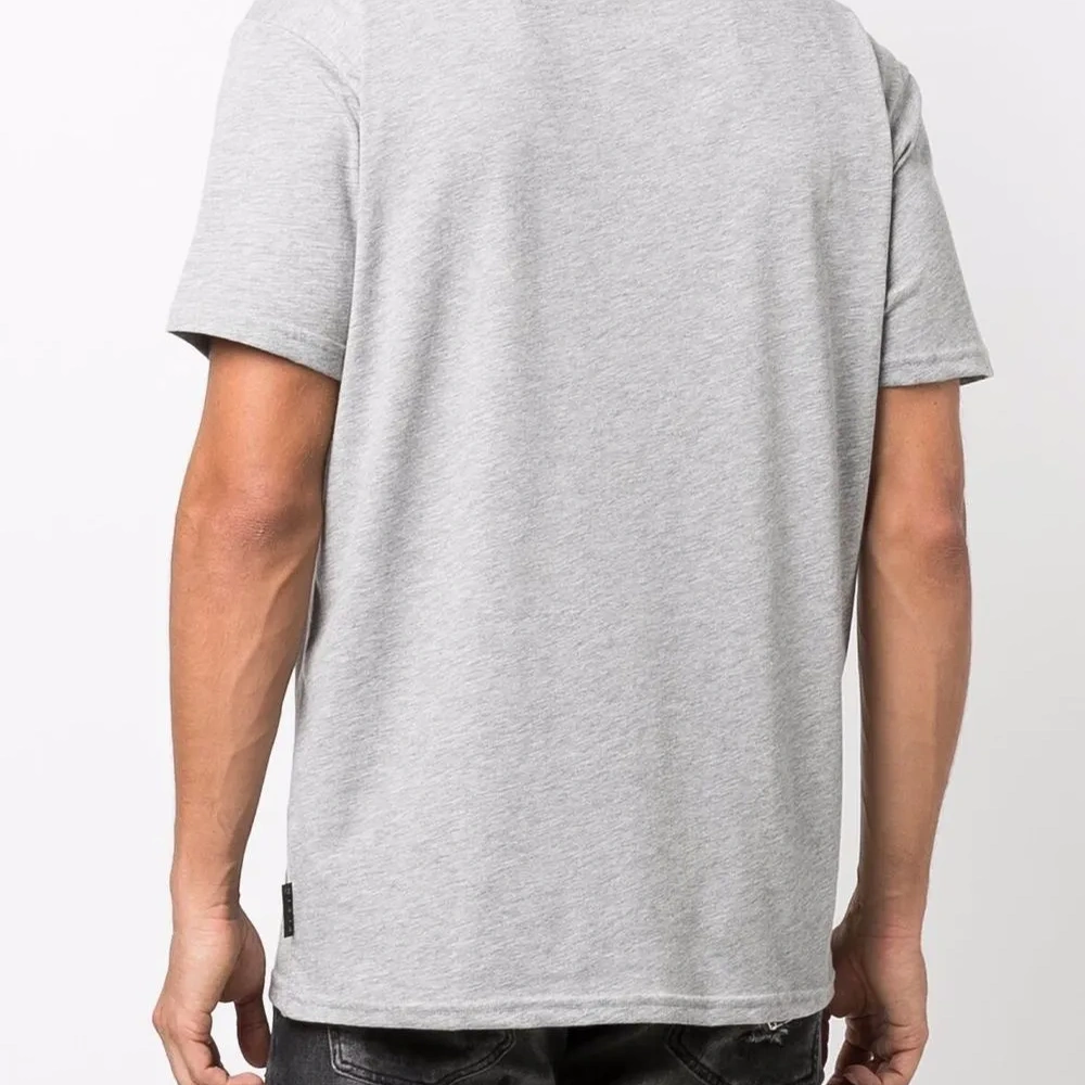 Логотип спереди, нашивка с логотипом сзади, круглый вырез, короткие рукава и прямой подол. Цвет: серый.